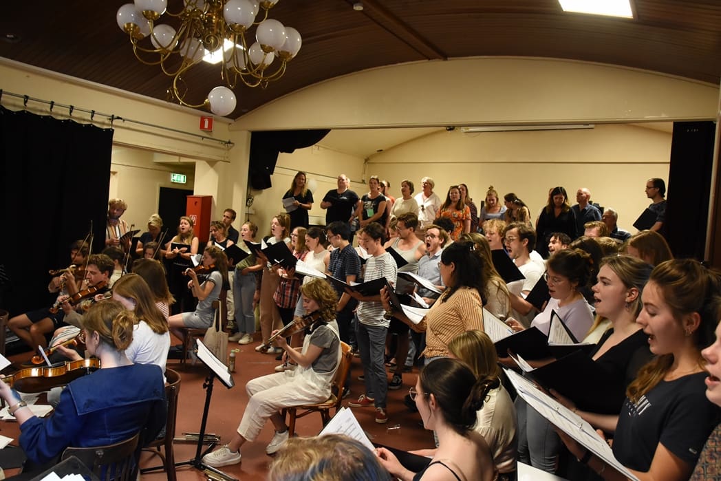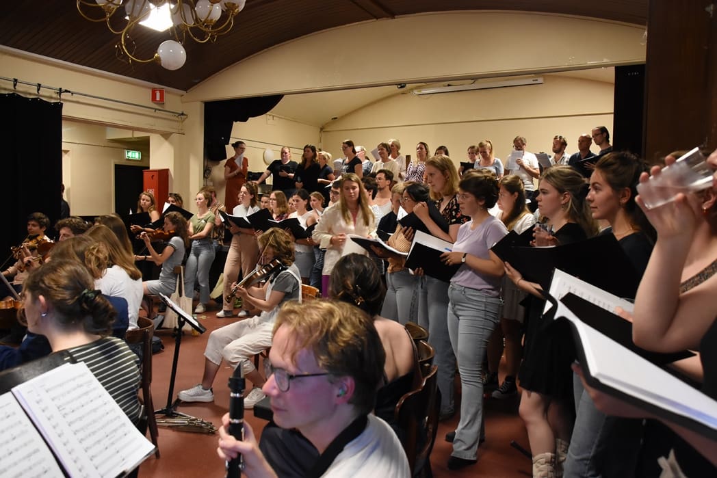 Terug naar gisteravond bij de laatste repetitie in Minerva met het koor en orkest van Sempre Cresendo, het oudste studentenorkest van Nederland.