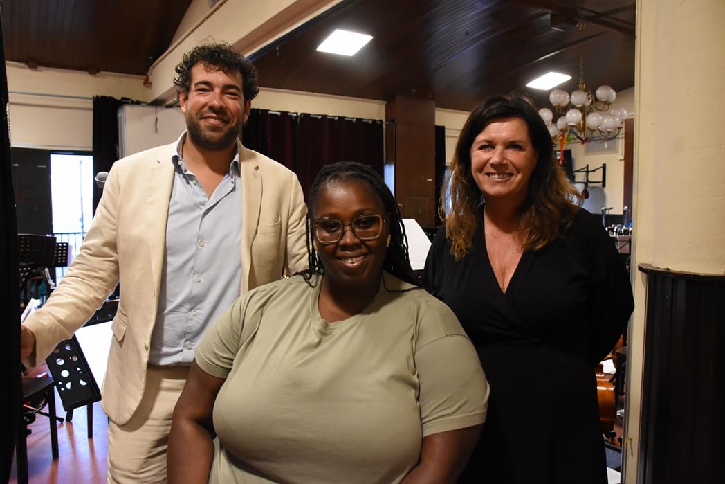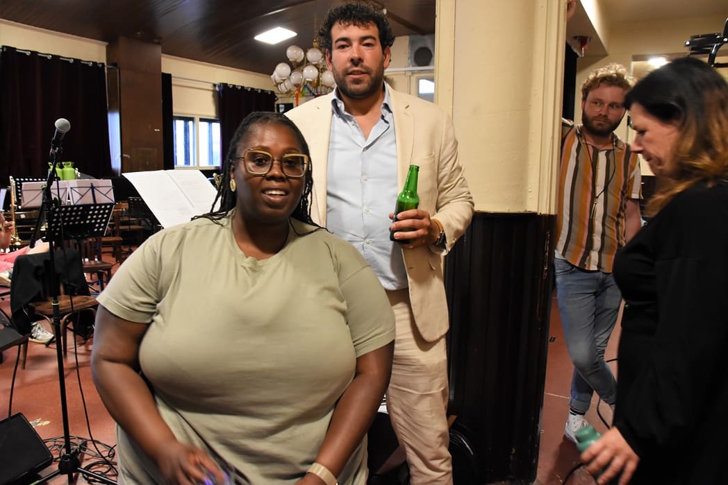 In de pauze van de repetitie een foto gemaakt met dirigent Guido Marchena en mede-organisator van de Lakenfeesten Monique IJsselsteijn.
