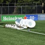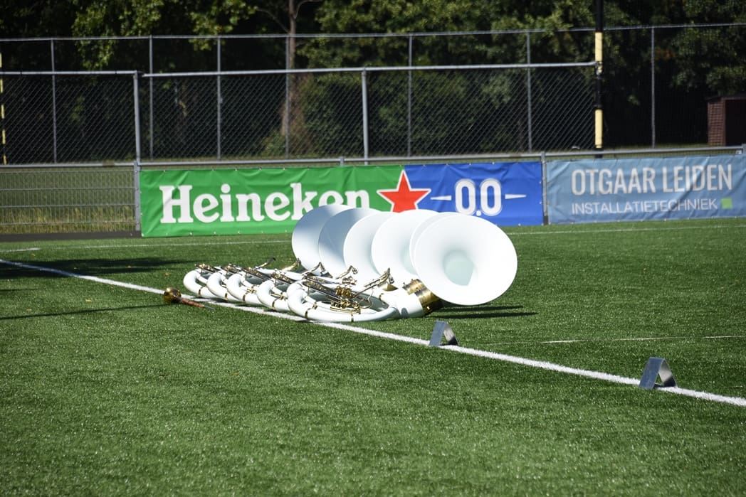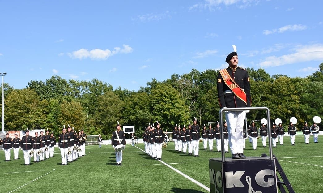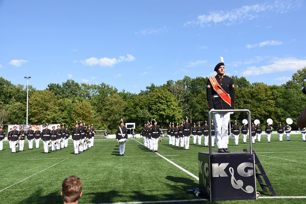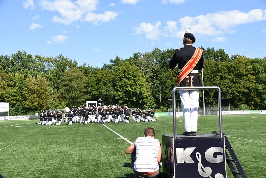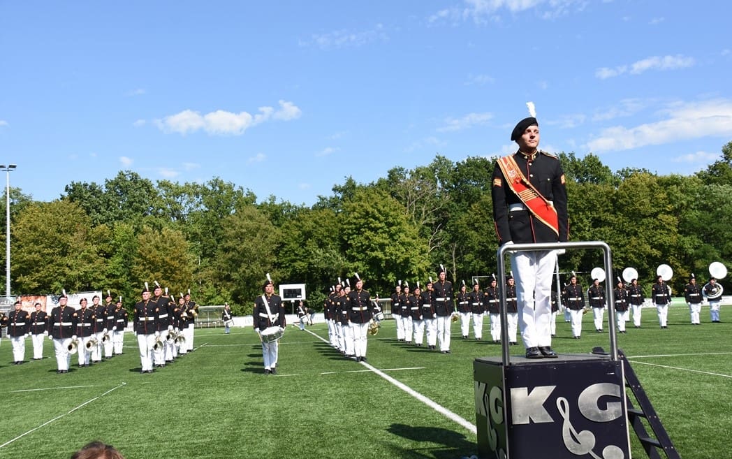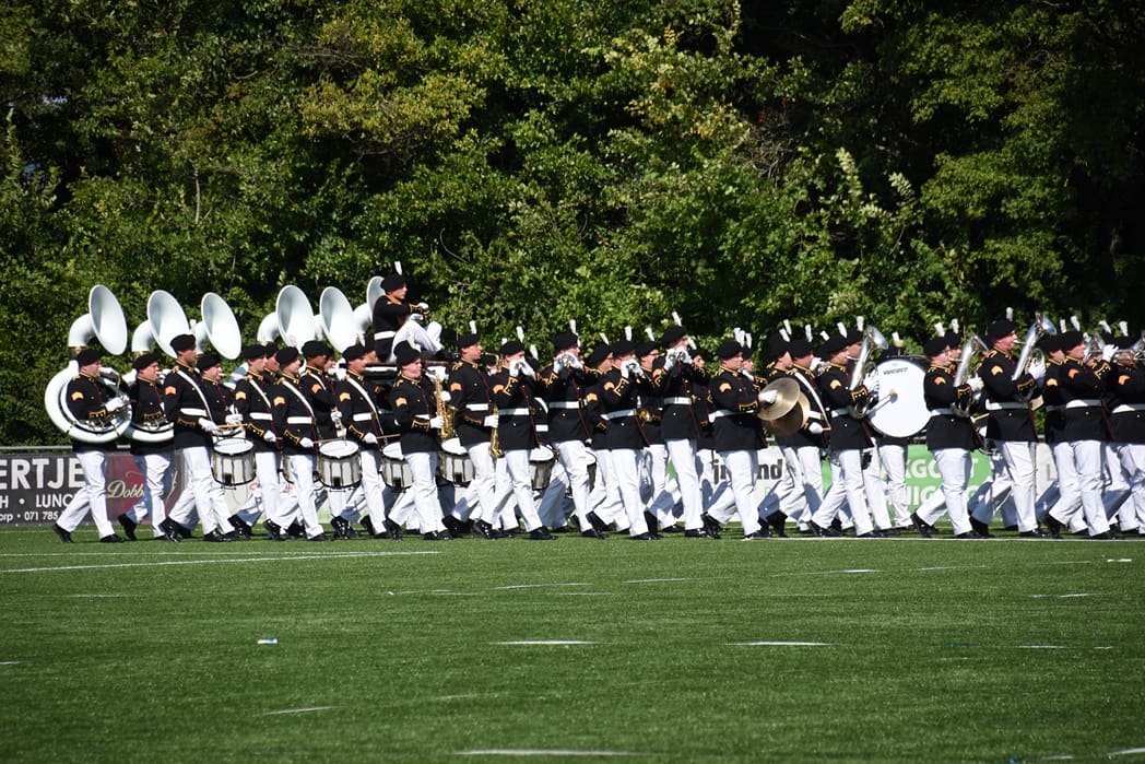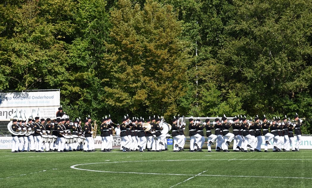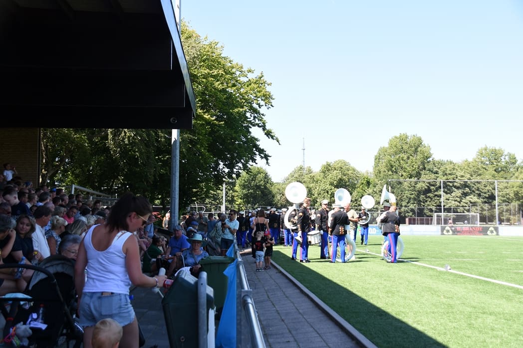 Komend weekend hoopt onze Leidse trots, Show en Marchingband K&G, hoge ogen te gooien bij het Wereld Muziek Concours in Kerkrade. Zondagmiddag was de één na laatste repetitie omgedoopt tot ‘uitzwaai-repetitie’. Beide hoofdtribunes van voetbalvereniging Lugdunum waren afgeladen vol met honderden familieleden en fans die kwamen kijken hoe K&G zowel de mars als de show in uniform ging uitvoeren.