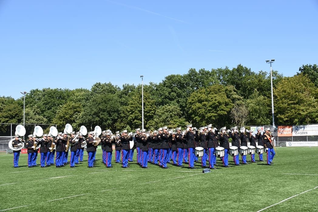 En alweer komt er echt iets het veld op, ik blijf het imposant vinden als het korps aan komt lopen.