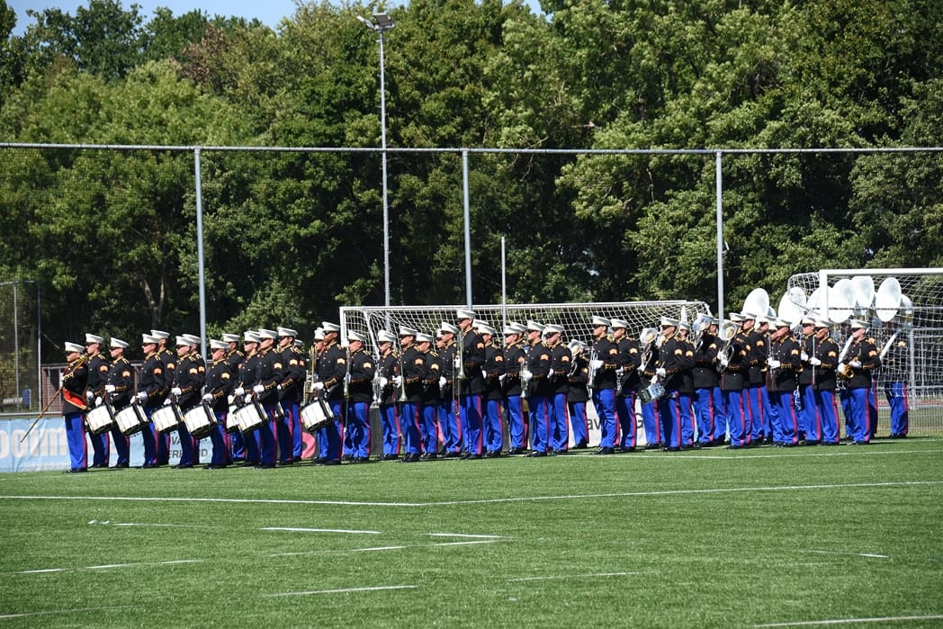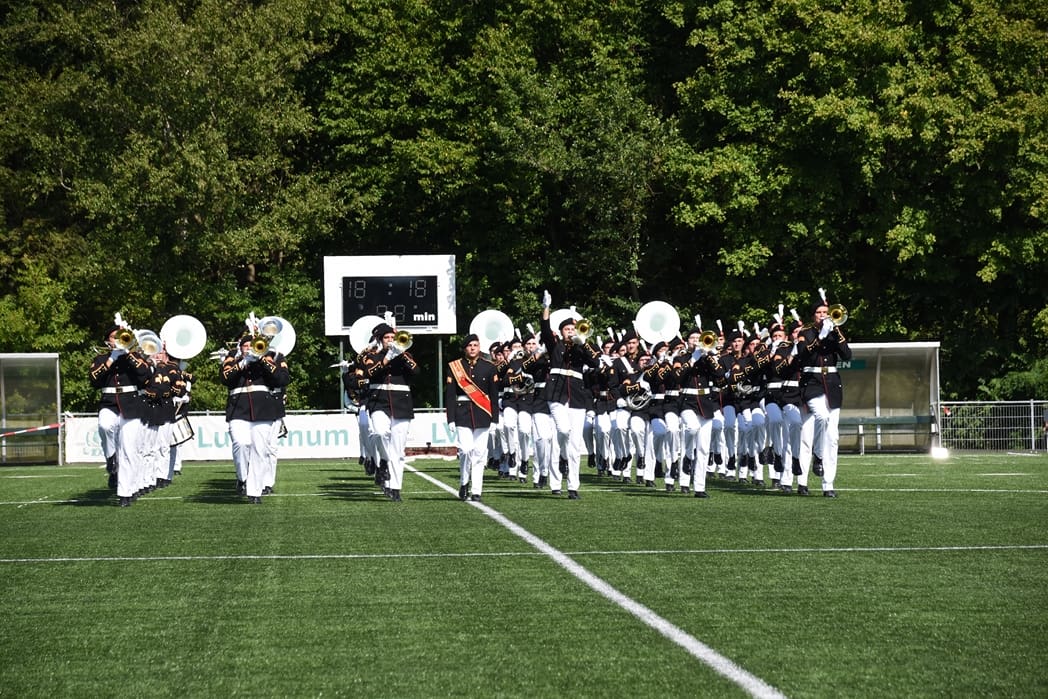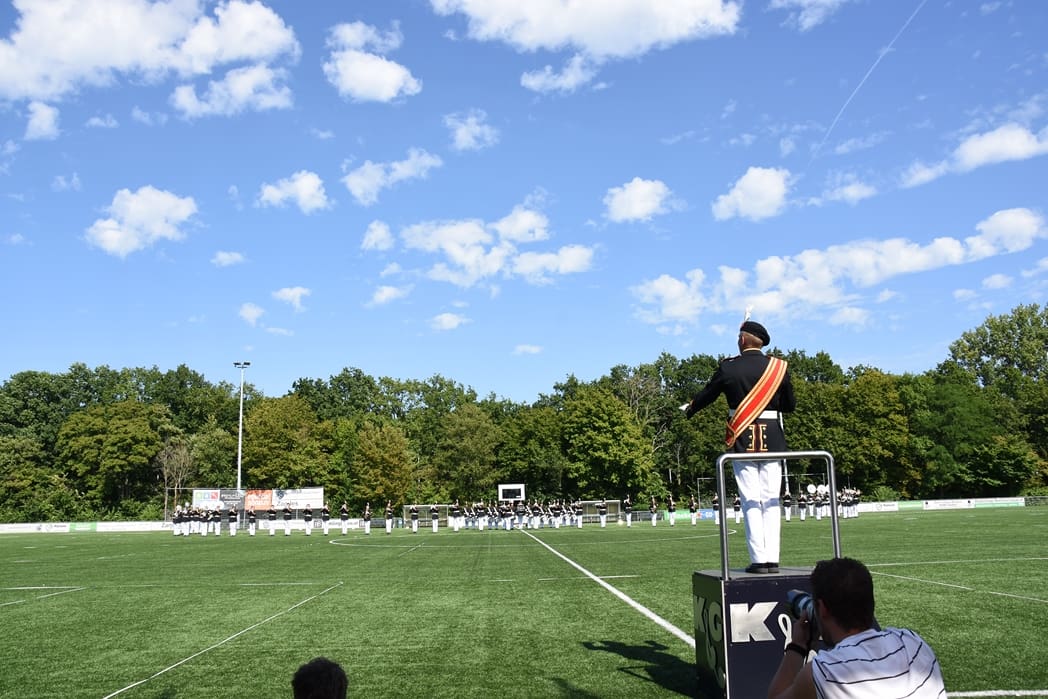 In de pauze vroeg iemand mij, ‘vind je het ook niet jammer dat ze zoveel aan de overkant van het veld liepen terwijl het publiek op de tribune zit’. Ik moest wel lachen en legde uit dat bij het WMC in het Parkstad Stadion Limburg het publiek rondom het veld zit en dat je dus met de mars alle vier de kanten moet laten genieten. En het woord Mars zegt het al, je marcheert dus over het hele veld.