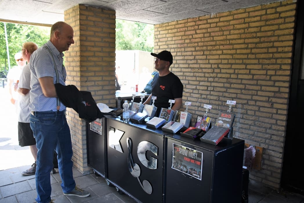 Ook de merchandise stand deed goede zaken. Niet vreemd natuurlijk met zulke schappelijke prijzen vijf eurootjes voor een CD en een tientje voor een video.
