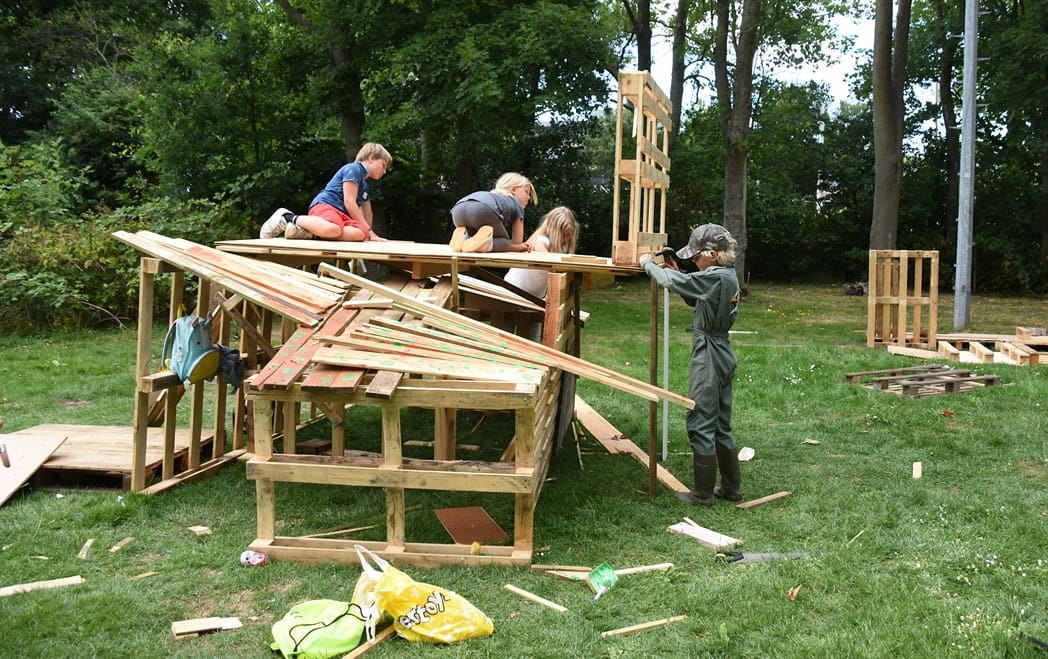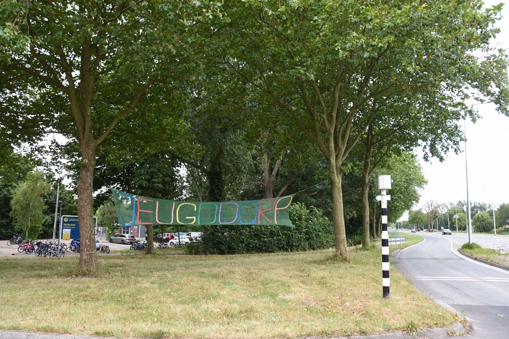 Deze week is de 55e editie van Jeugddorp van start  gegaan. Deze- en volgende week kunnen de kinderen zich weer uitleven met huttenbouw, spelletjes, knutselen, sport en theater. Vrijwel elke Leidenaar weet natuurlijk waar het terrein van Jeugddorp is, maar voor de zekerheid wordt toch elk jaar het spandoek weer opgehangen.