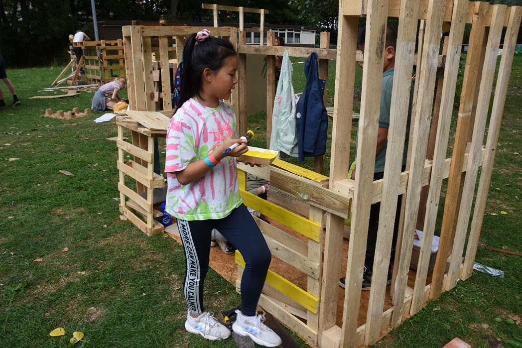 De hut is bijna klaar nu alleen nog even opvrolijken met een mooie schildering.