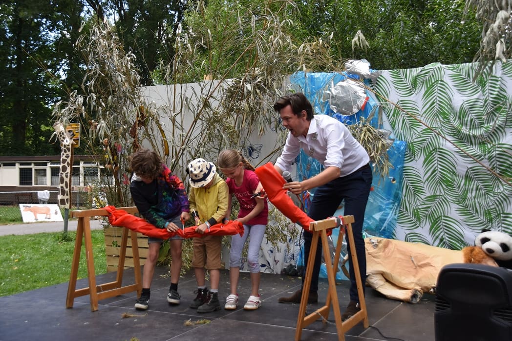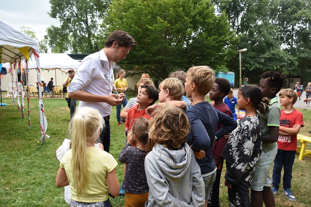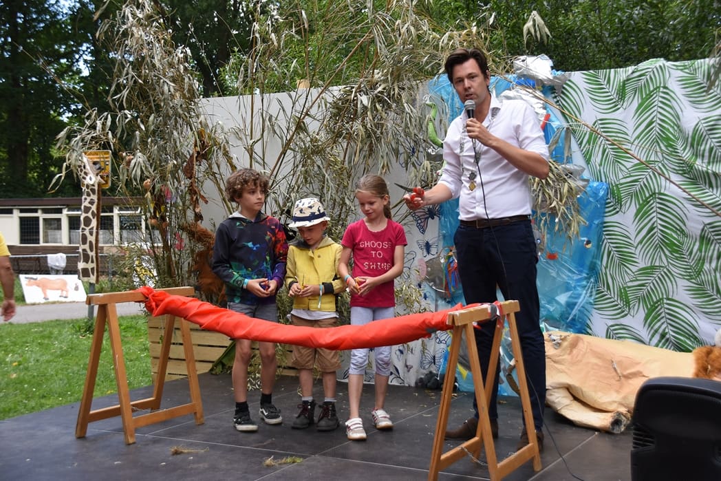 De wethouder kwam natuurlijk niet alleen maar even kijken, hij ging ook de 55e Jeugddorp weken officieel openen.