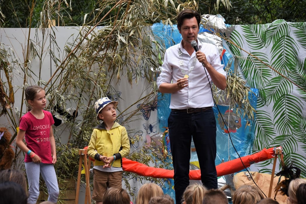 Kinderen we hebben vandaag niet alleen een wethouder op bezoek, maar een wethouder die ook nog eens locoburgmeester is en hij heet Julius.
