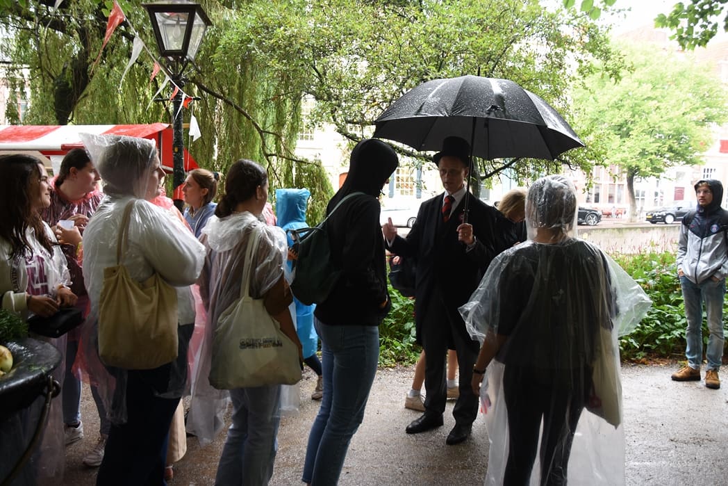 Als je in een vreemde stad komt studeren is het natuurlijk handig als je weet waar de supermarkt is, maar nog belangrijker is om iets van de stad zelf te weten. Zoals het Feest der Feesten en de lekkere Leidse bieren, feest en bier toch twee dingen die menig student niet afslaat. Het was jammer dat de regen, zeker in het begin van de middag, met bakken uit de lucht kwam. Op het Garenmarktplein konden de eerstejaars bieren proeven van de Leidsche Brouwers Pronck en Leidsch Blond.