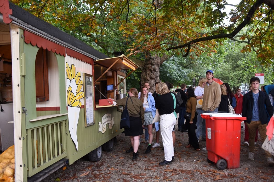Van drinken en regen krijg je trek, er stond dan ook de hele middag een hele voor een gratis patatje bij Karel’s Biofriet.