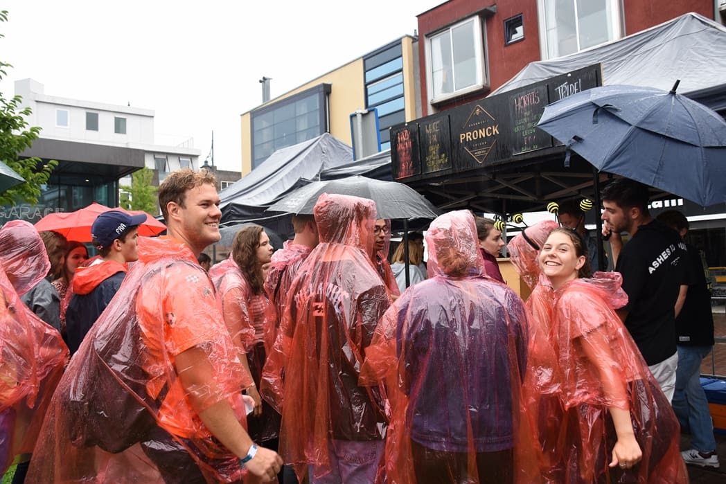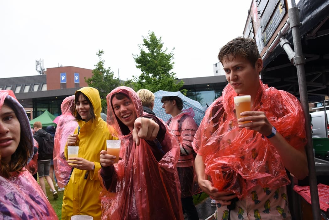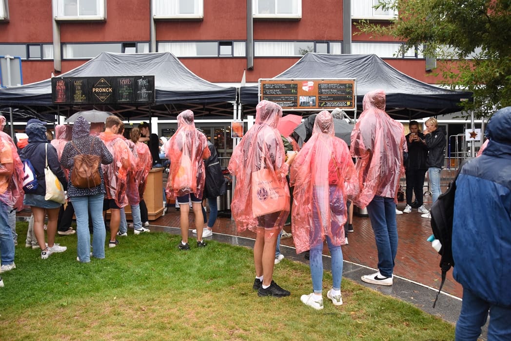 Op het Garenmarktplein werd ondertussen rustig doorgetapt ondanks de stromende regen.