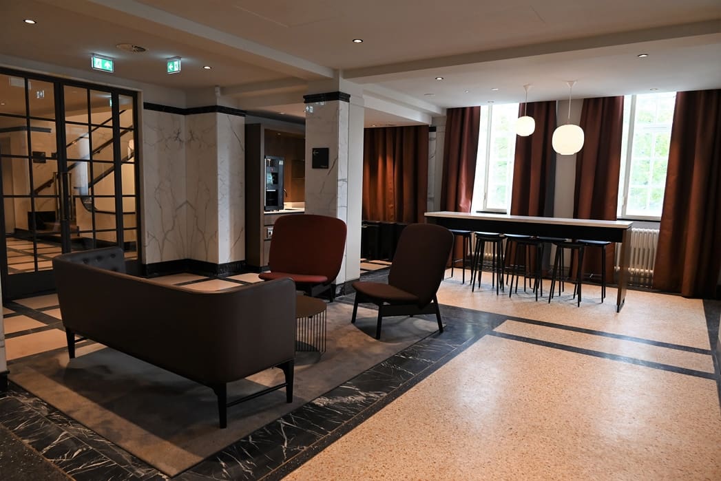 Ik laat een paar opvallende of bijzondere plekken zien. Er zijn overal in het pand flexwerk plekken en koffiecorners. Ook een mooie koffiecorner bij de grote Commissiekamer.