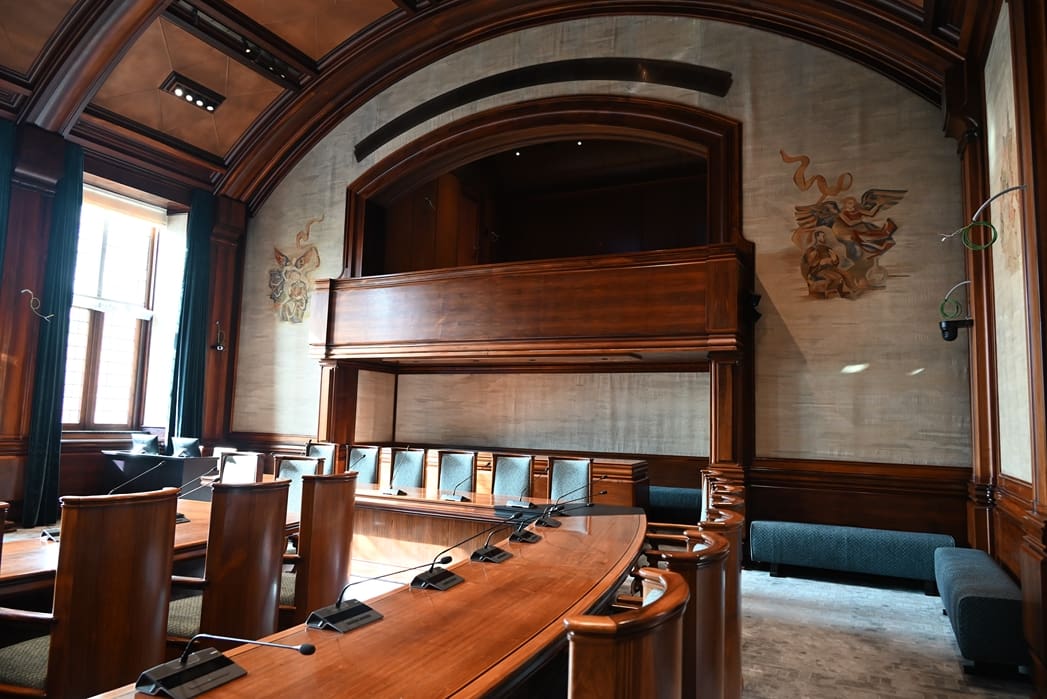 Het is en blijft gewoon een mooie raadszaal met al dat hout en oude elementen.