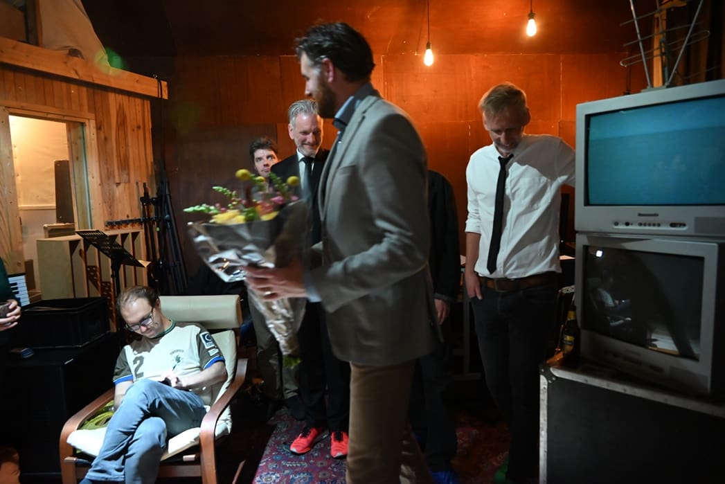 Nadat we de clip nog voor een tweede keer gezien hadden, had de band bloemen voor Paula en Eus.