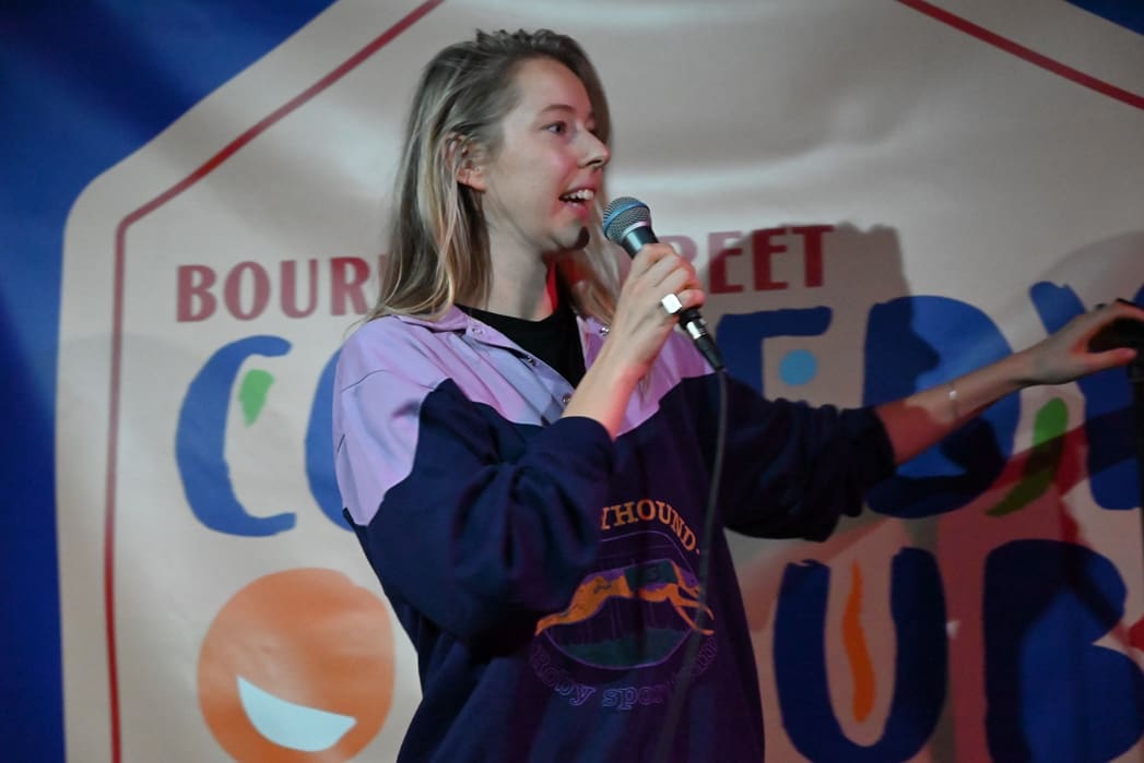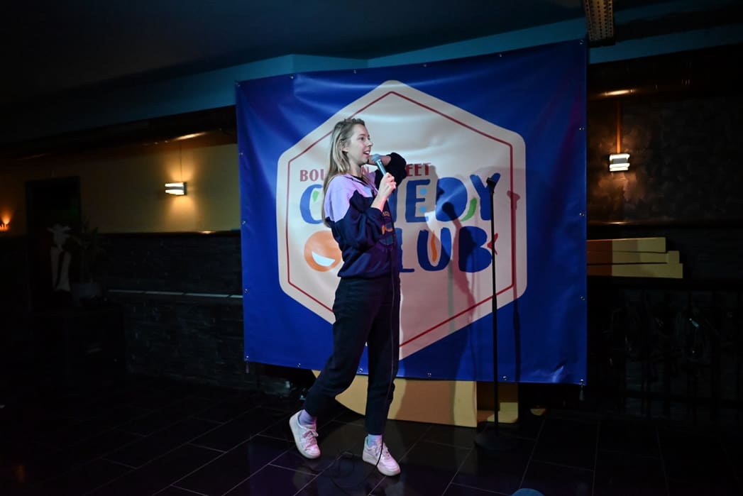 De avond werd geopend door Céline Schrama, die ik ken van de voorronde en de finale van Leids Cabaretfestival 2022. Ik vond haar bij de voorronde al geweldig en het verbaasde mij niets dat ze in de finale de Studentenprijs won.
