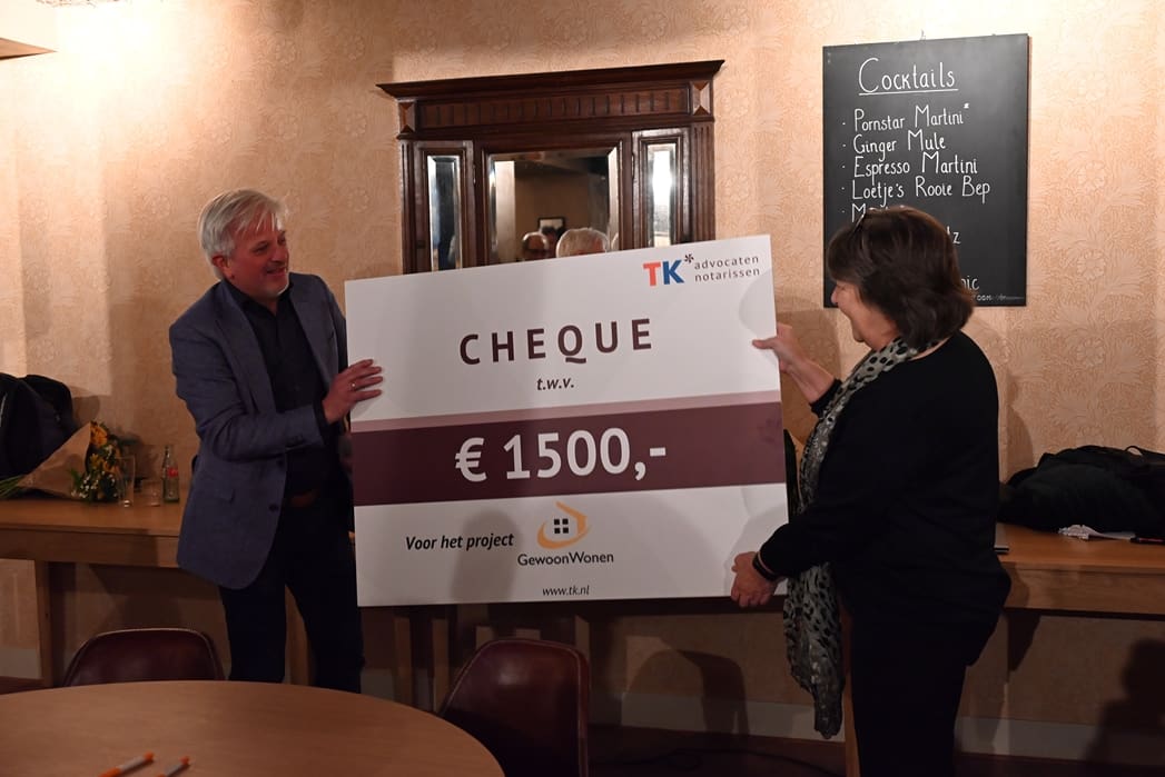 Heel erg mooi na het overlijden van Martijn zijn de bezittingen van Martijn verkocht via de kringloopwinkel. Mede daardoor konden de ouders nu twee cheques aanbieden. De eerste voor de Stichting Gewoon Wonen.