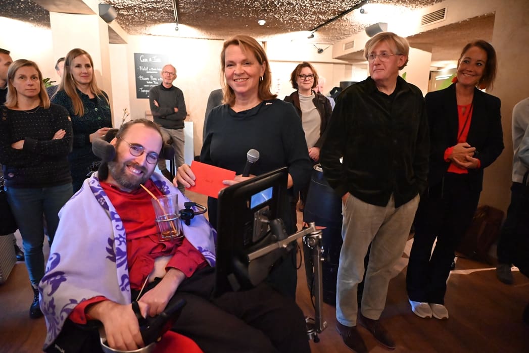 Zeven jaar geleden nam Martijn van Rees het initiatief om te proberen een huis te laten bouwen waarin jongeren met een progressieve spierziekte zelfstandig zouden kunnen wonen. We zijn nu zeven jaar en een heleboel acties en initiatieven om de kosten te kunnen dekken verder, maar gisteren werd dan eindelijk het huis officieel geopend. Helaas is Martijn in november 2020 overleden en heeft zijn droom niet zelf uit zien komen. Ter nagedachtenis aan Martijn hingen zijn moeder Monique Andriessen en Jacqueline Bouts, directeur Xenia hospice een schildje op ter ere aan- en als nagedachtenis aan Martijn.