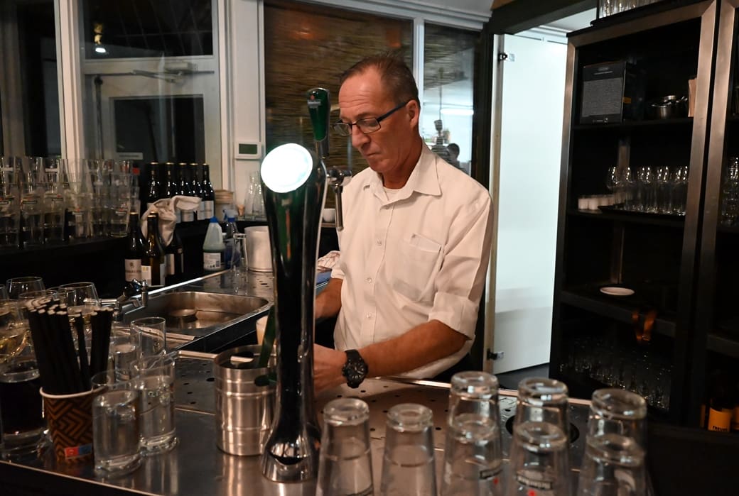 Stephan maakt zich niet druk en tapt in rap tempo onverstoorbaar door.