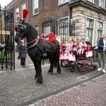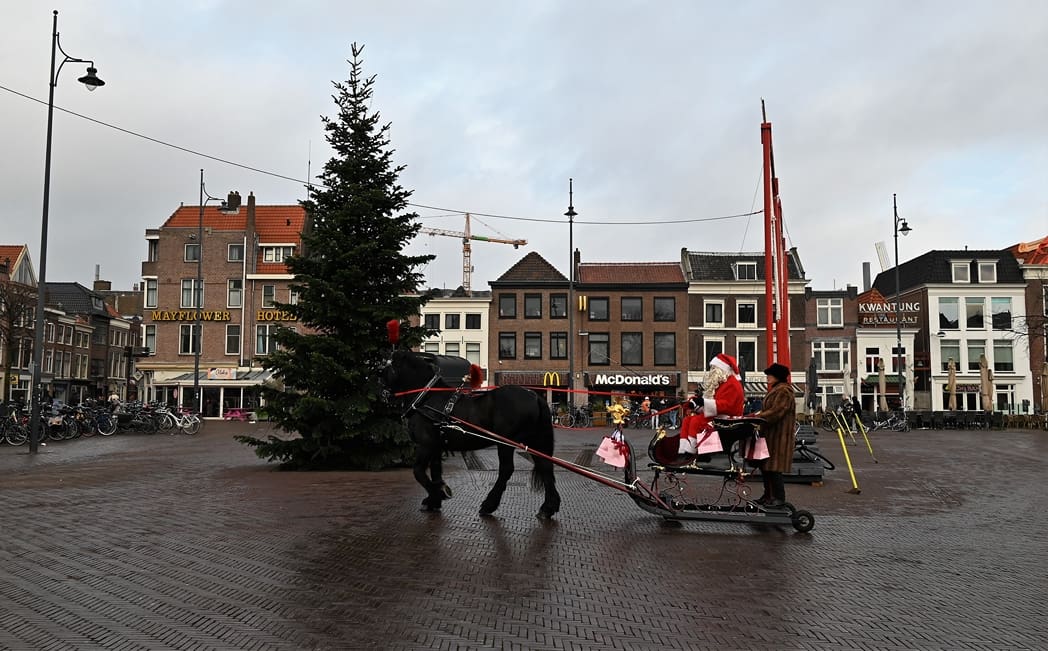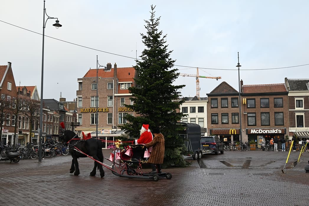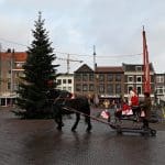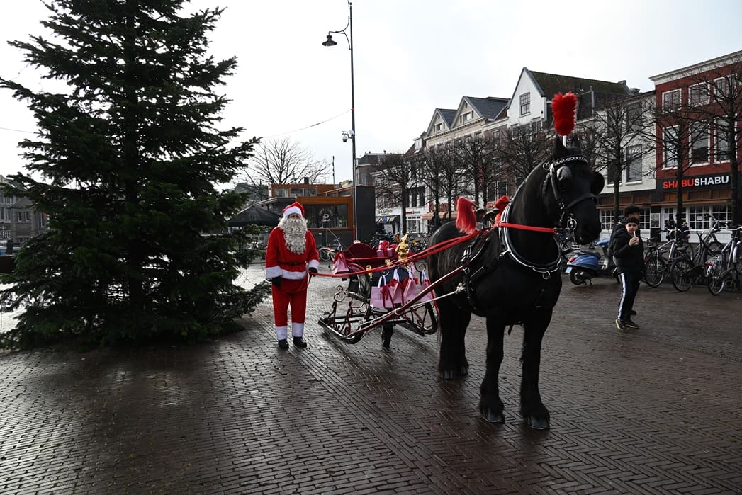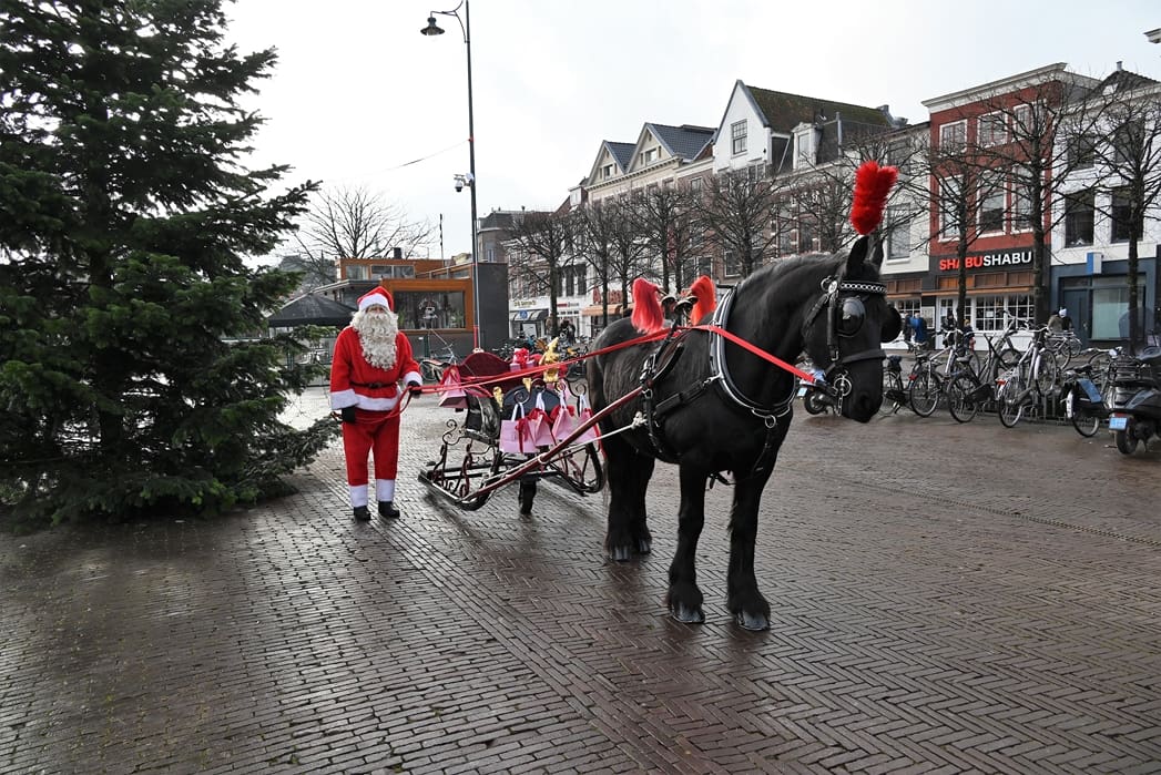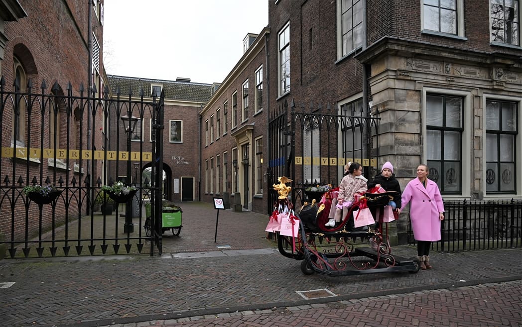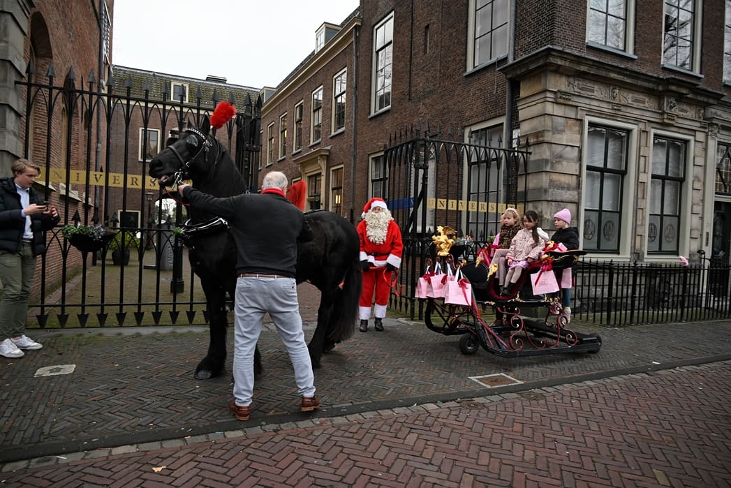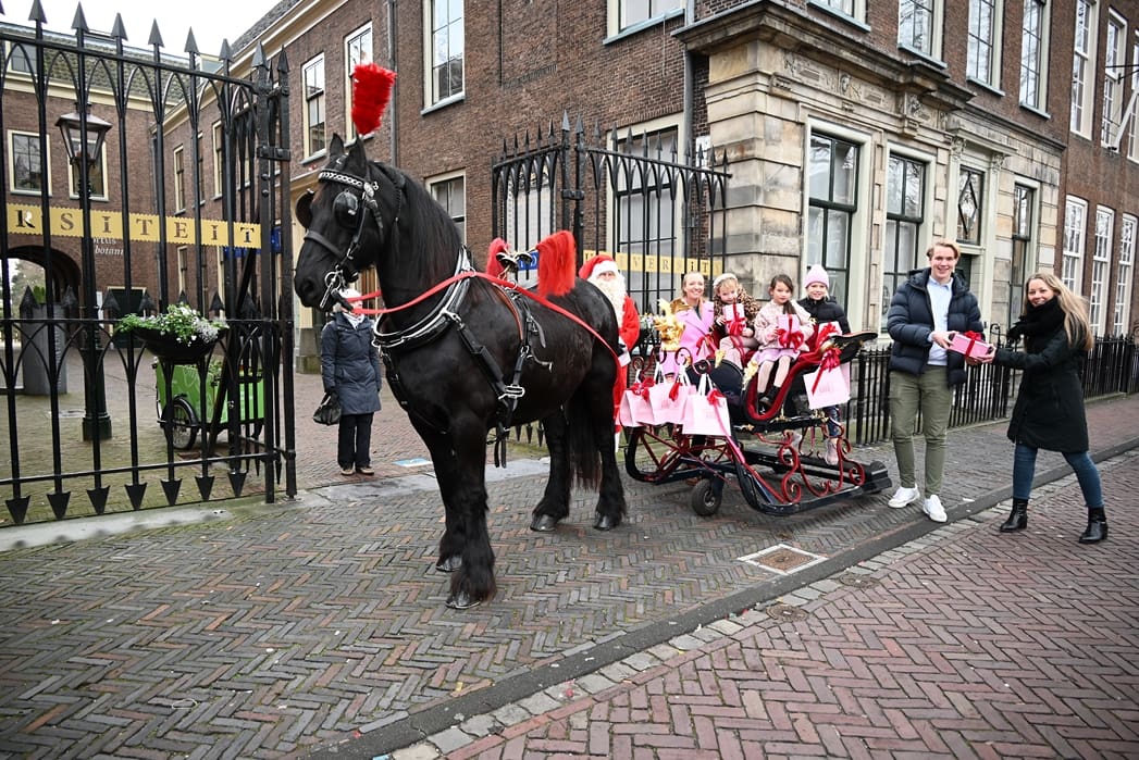 Een organisatie waarbij hij in elk geval in het pakket te vinden is, dat is de universiteit. Anton en Olivier Verschelling wilden de bestelling op een leuke manier bij de universiteit afleveren. Dan kom je in deze tijd van het jaar al snel bij een arrenslee terecht, alleen makkelijker gezegd dan gedaan. Toch stond er gisteren een arrenslee op de Beestenmarkt.