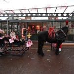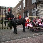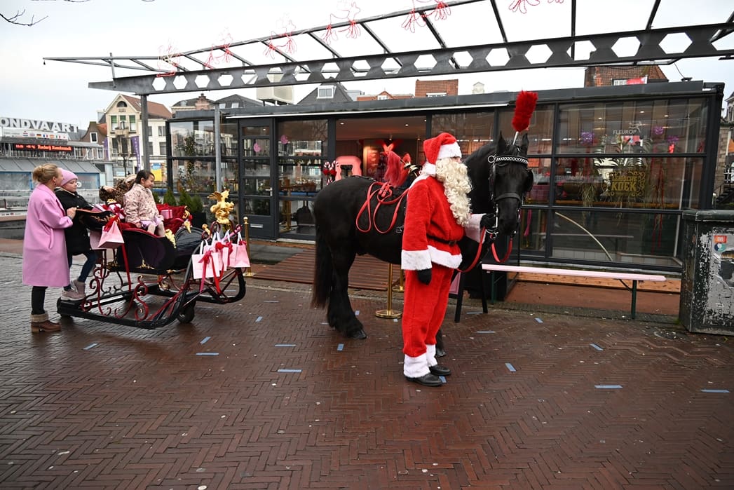 Paard en kerstman weer uit de trailer en netjes voor de arrenslee zetten 🙂
