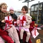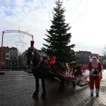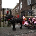 Na deze foto’s werden het paard en de kerstman weer in de trailer gezet en de arrenslee naar de Universiteit geduwd.