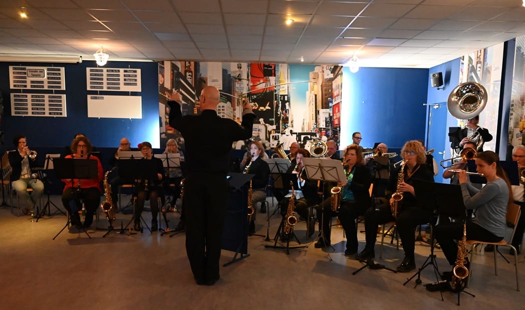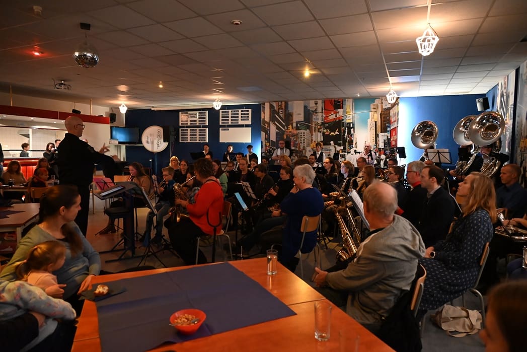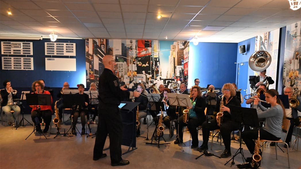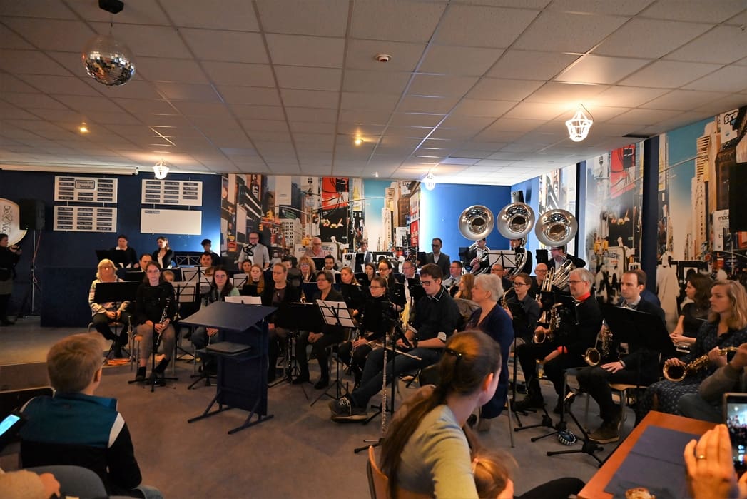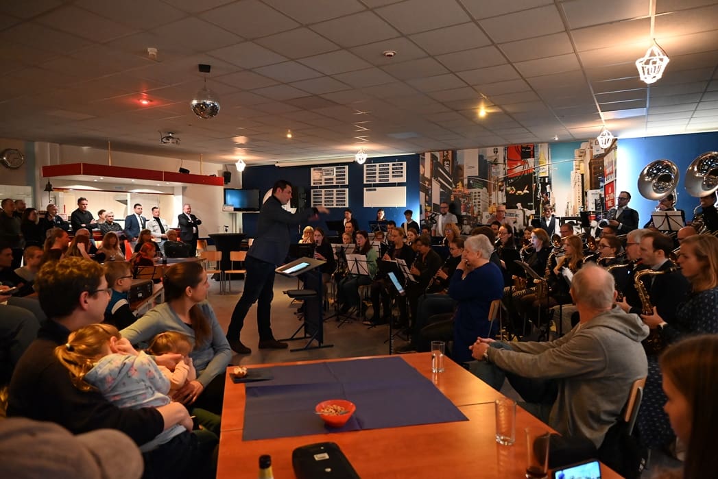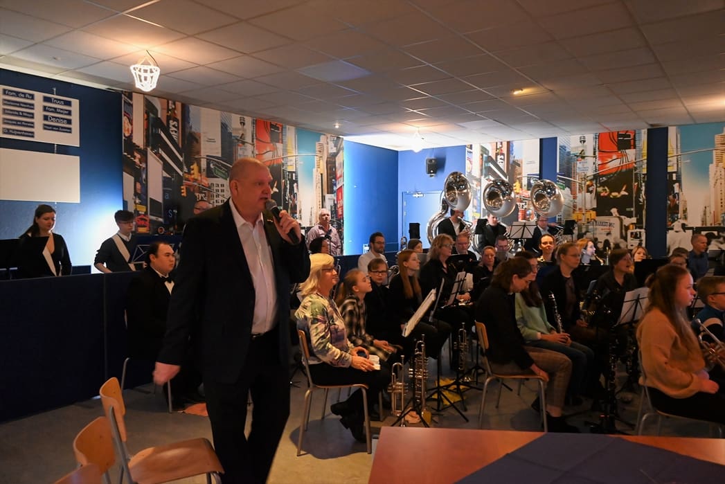 De grote zaal waar normaal gerepeteerd wordt zat goed vol met leden en hun familie. Voorzitter Rob Blauw heette iedereen welkom en vertelde wat we deze middag konden verwachten.