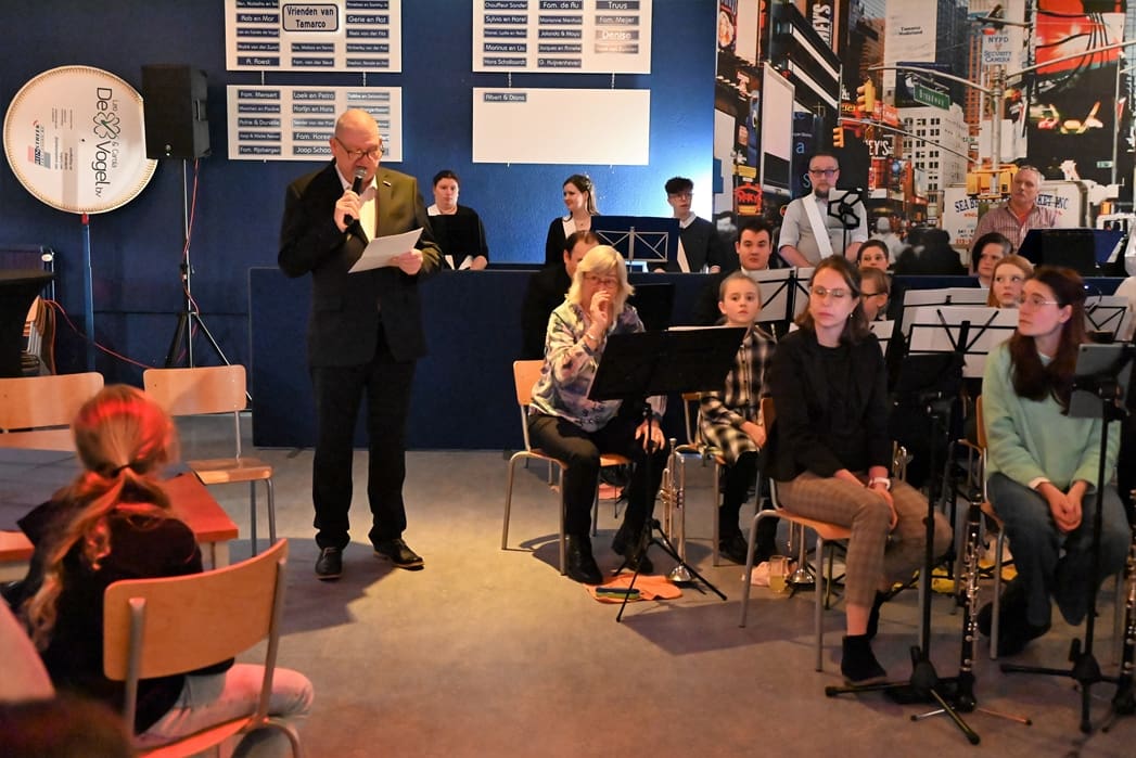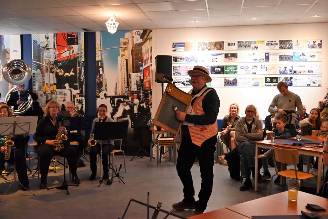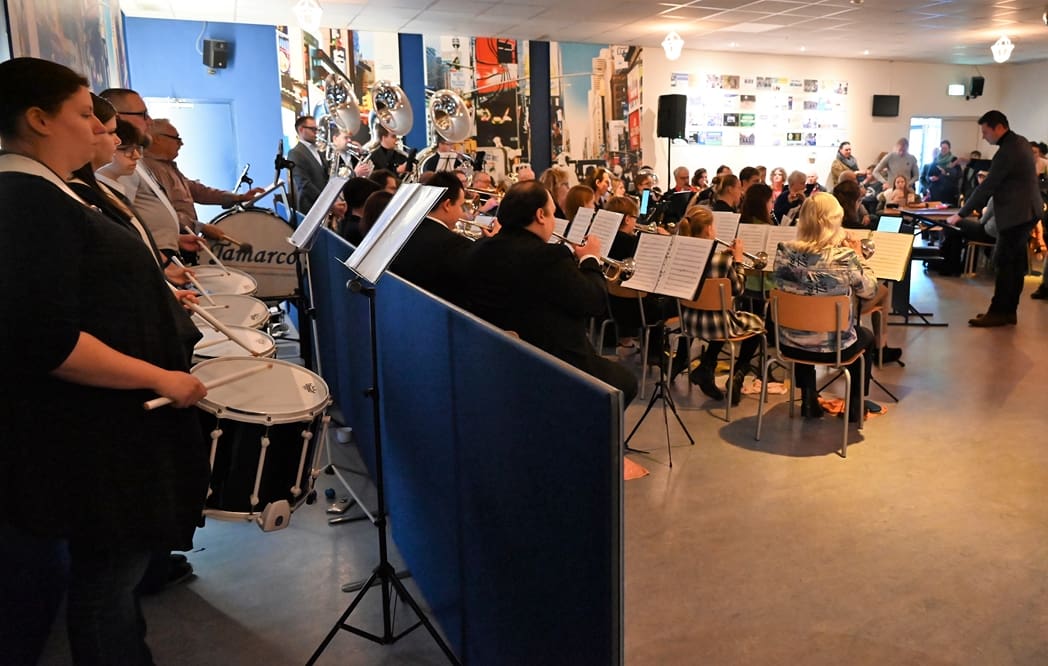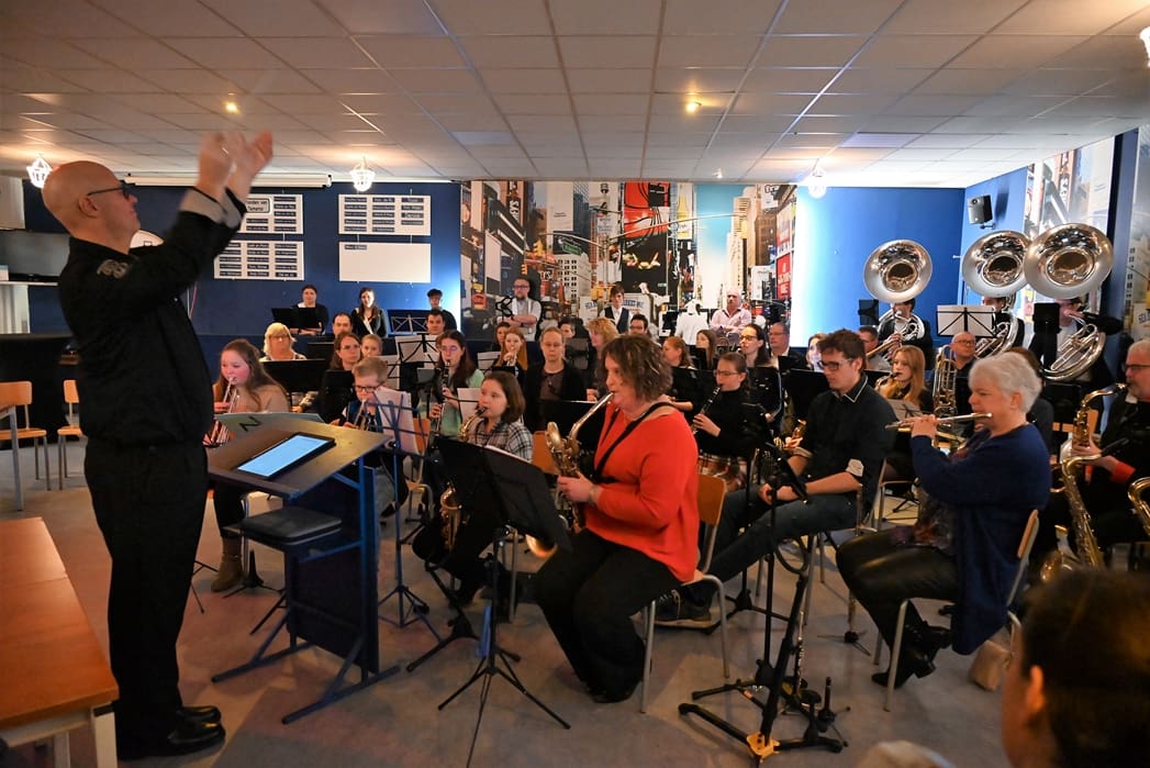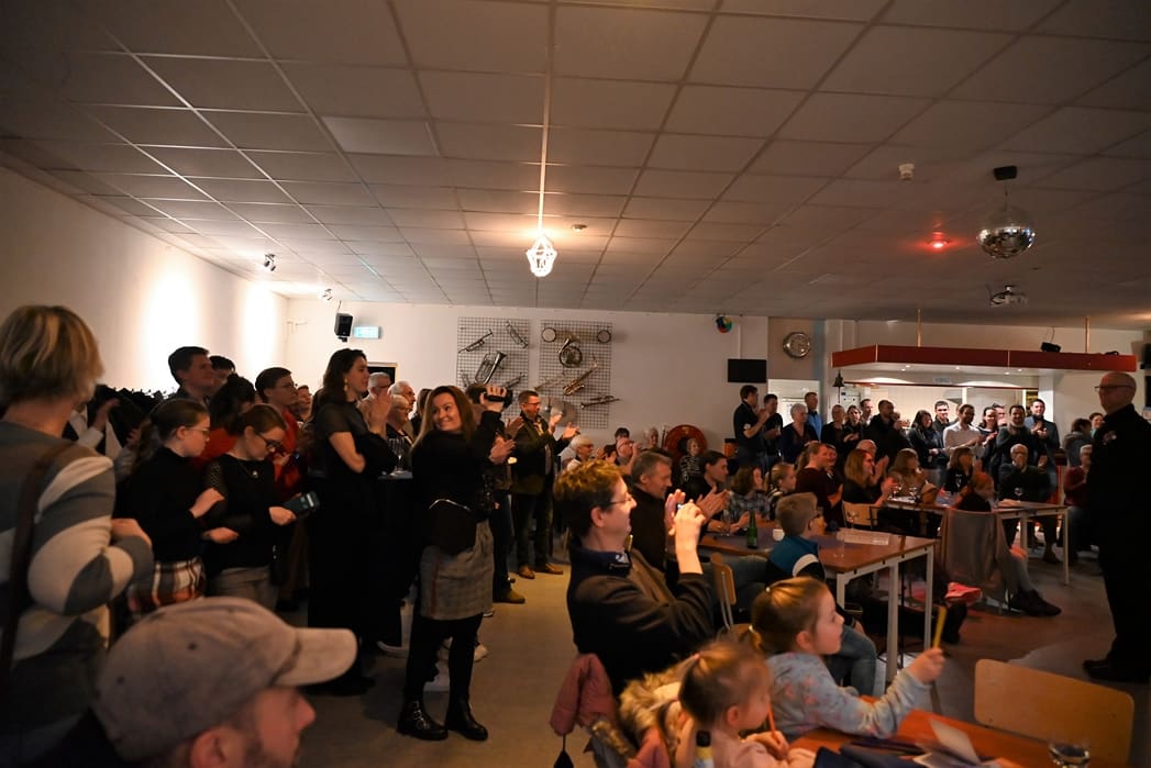 De grote zaal waar normaal gerepeteerd wordt zat goed vol met leden en hun familie. Voorzitter Rob Blauw heette iedereen welkom en vertelde wat we deze middag konden verwachten.