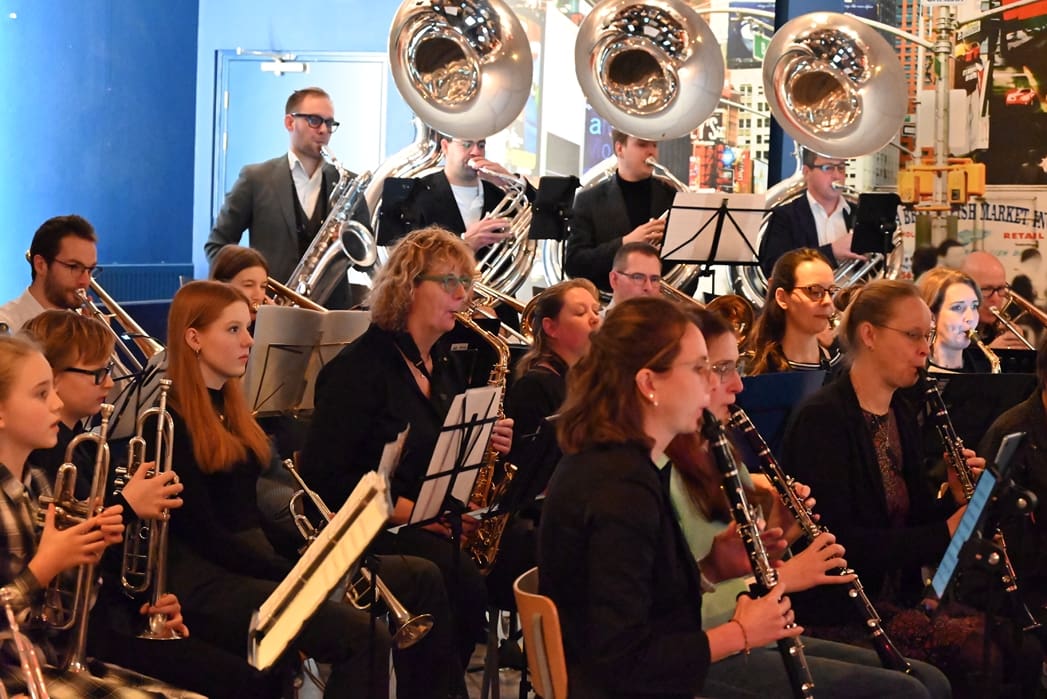 Na de leerlingen was het de beurt aan de Show-& Marchingband zelf.