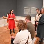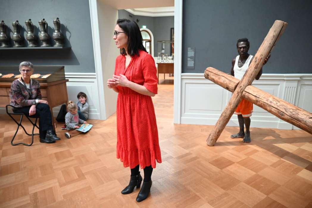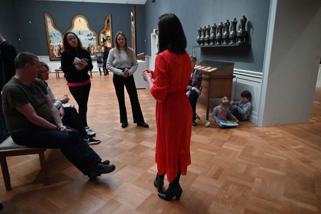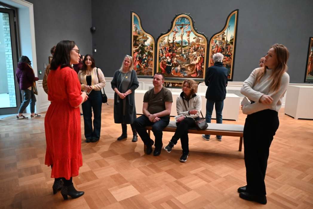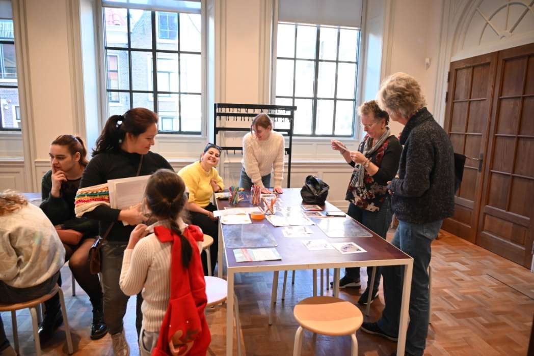 In een andere zaal gaf Liesbeth van Vliet, werkzaam bij Universiteit Leiden – Faculteit der Maatschappij- en Gedragswetenschappen een toelichting op de kunstwerken.