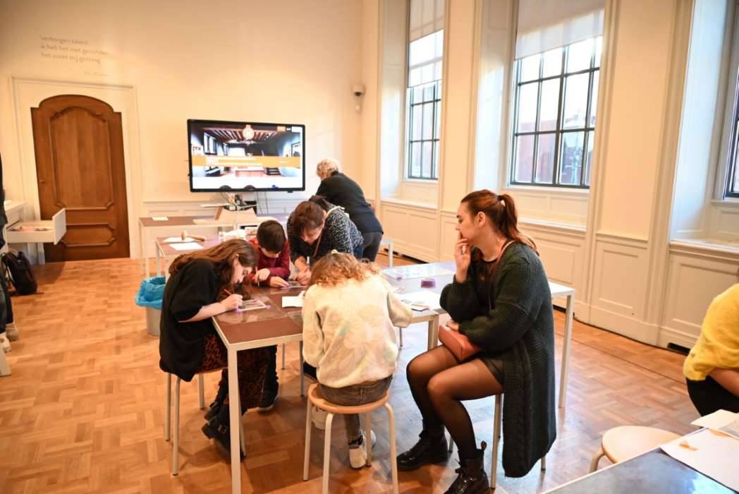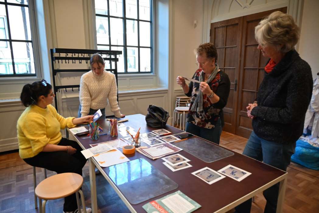 De hele middag liepen bezoekers in en uit om te zien hoe het etsen gaat of zelf een ets te maken.