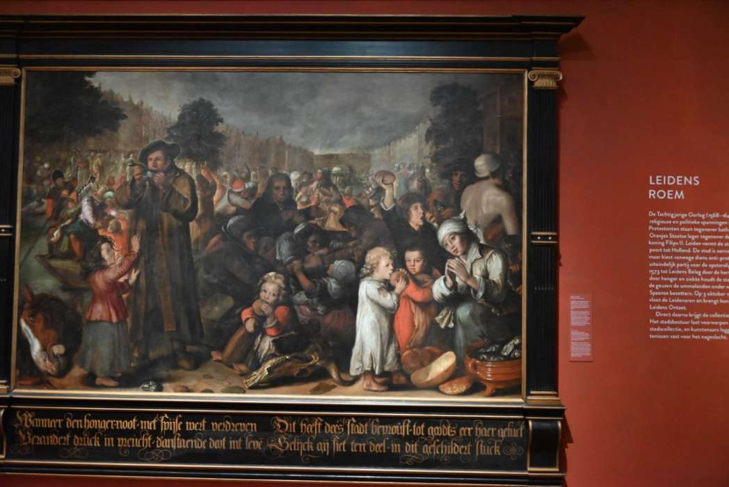 Dit schilderij waar burgemeester Van der Werf zijn arm aanbiedt aan de hongerige Leidse bevolking kent natuurlijk elke Leidenaar.