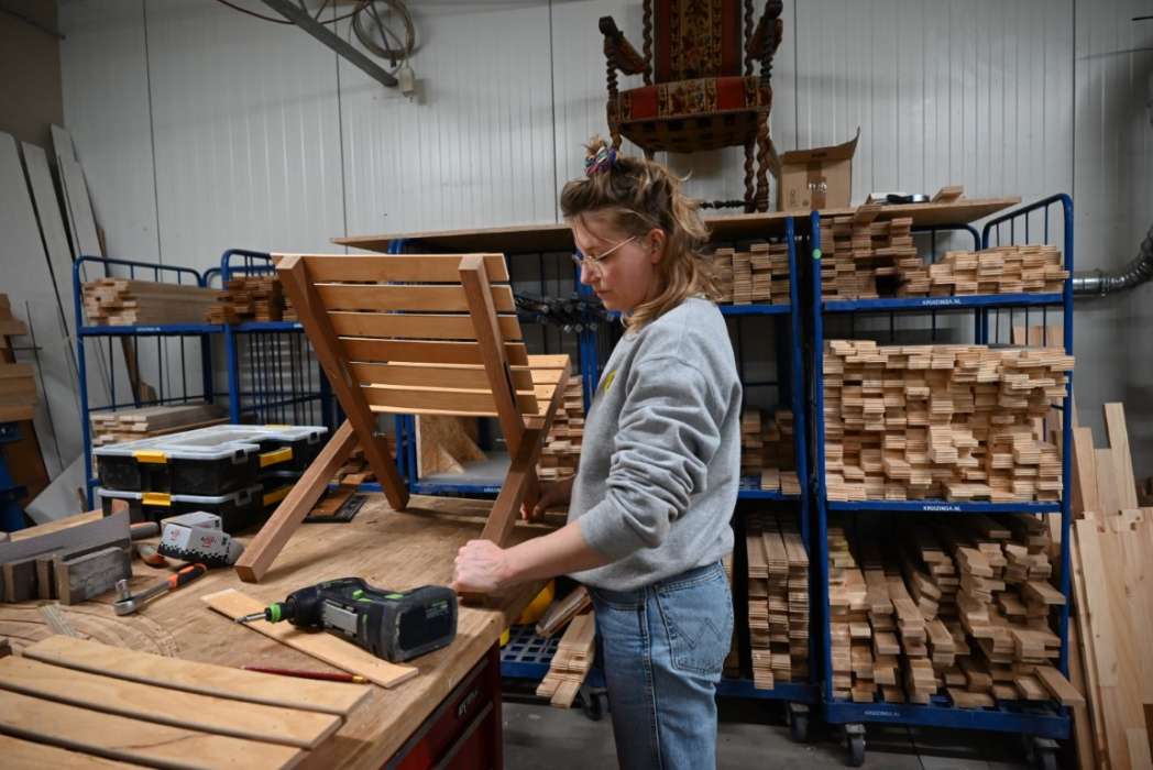 Op de site van het Circulair Warenhuis is ook een webwinkel te vinden met artikelen die de medewerkers gemaakt hebben. Ook dit soort stoelen zijn te koop bij het Circulair Warenhuis Leiden.