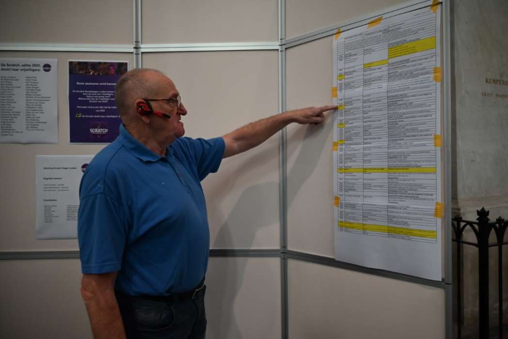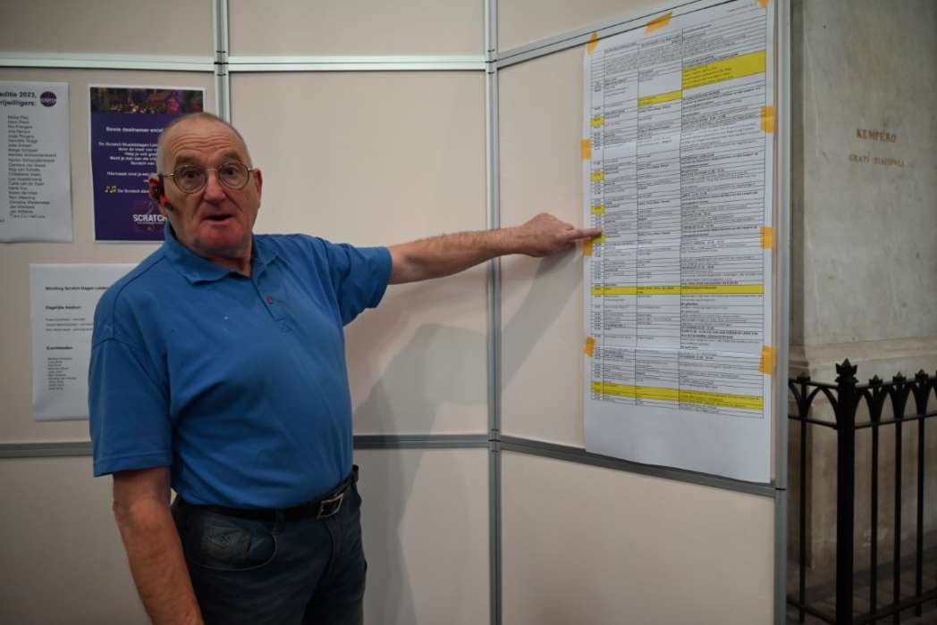 Wat betreft de opbouw is Arie Druif de spin in het web. Arie is al zeventien jaar vrijwilliger bij de Scratch waarvan de laatste acht jaar coördinator van onder andere het opbouwen en afbreken. Alles zit feilloos in zijn hoofd en mocht hij even twijfelen dan zijn er nog de schema’s.