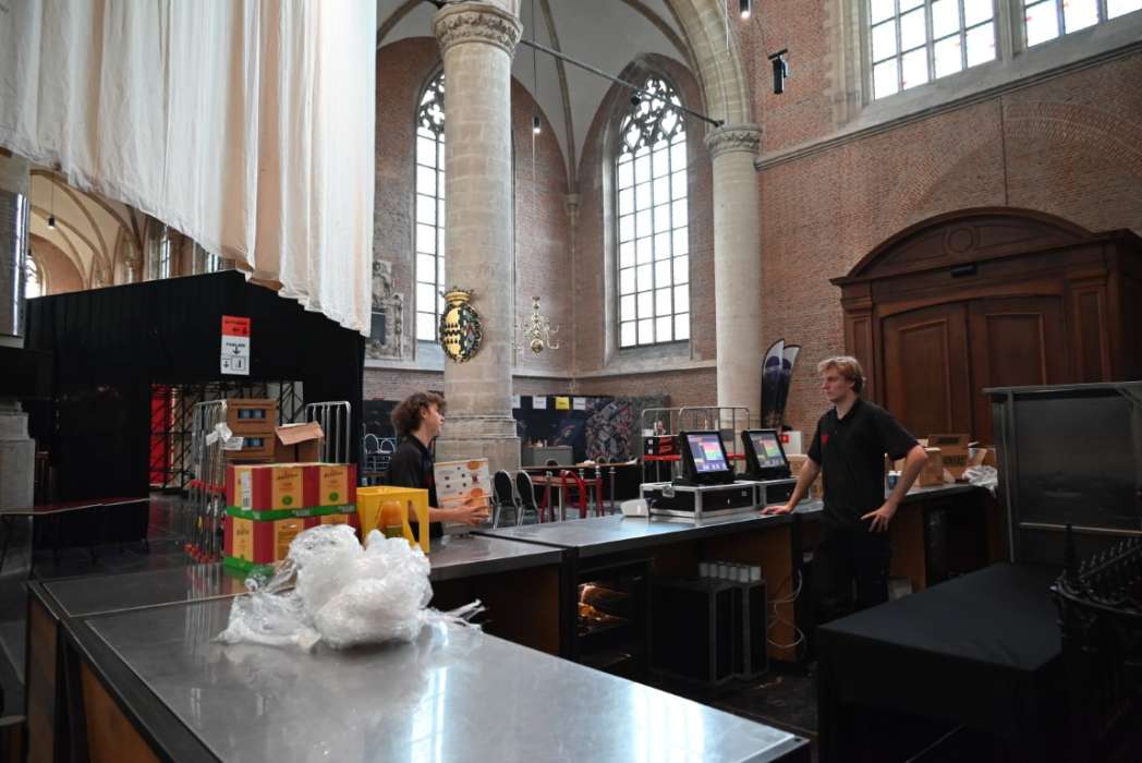 Voor het zover is moet er natuurlijk heel wat werk worden verzet om de Pieterskerk in te richten voor deze vier dagen. Zowel vrijwilligers van de Scratch als medewerkers van de Pieterskerk zijn al drie dagen keihard aan het werk alles in orde te maken en in te richten.
