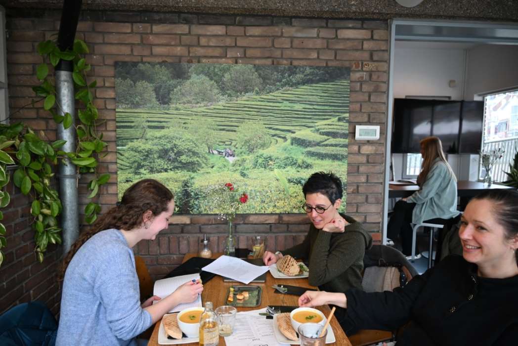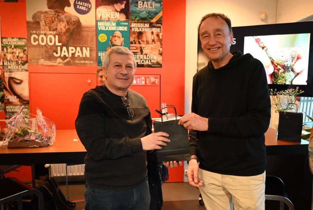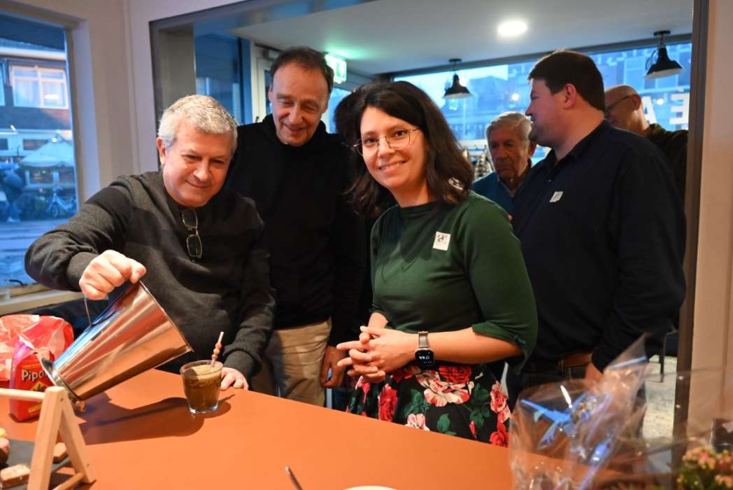 Na afloop werd er nog even nagepraat en iets gedronken, drie keer raden wat. Hanna Bakkal liet proeven hoe de thee op zijn foto smaakt.