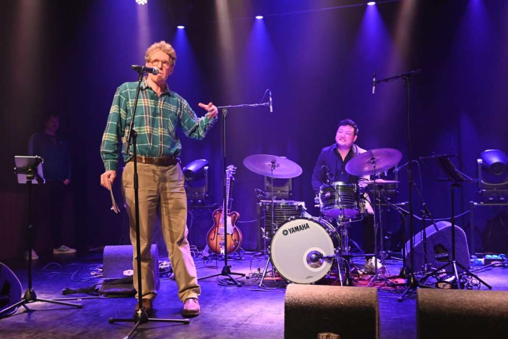 Halverwege de eerste set een verrassing. Dichter Charles Schouten droeg met begeleiding van de band drie gedichten voor.