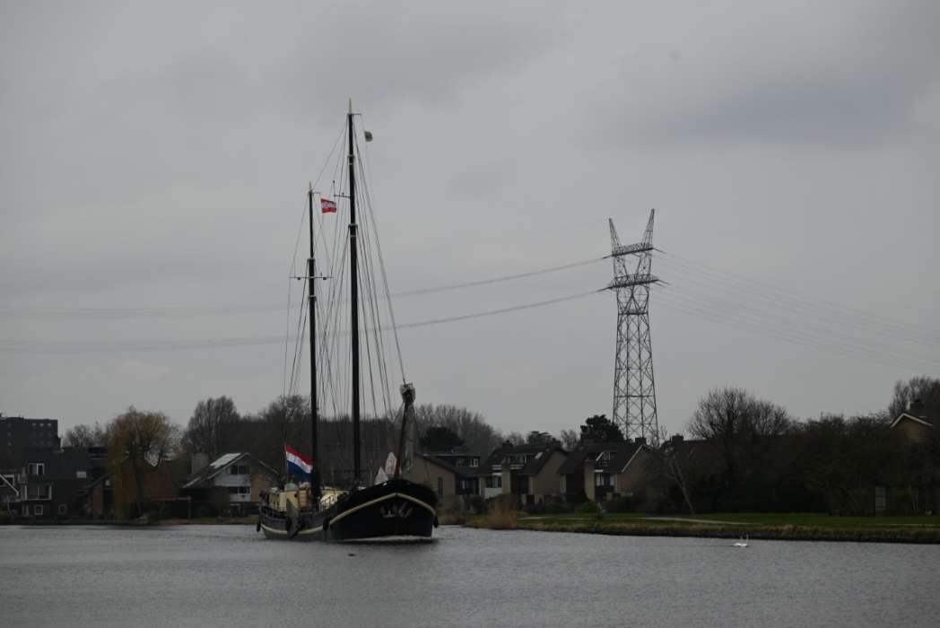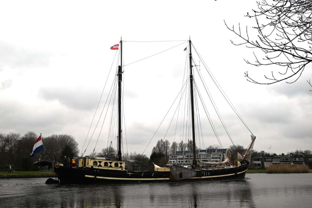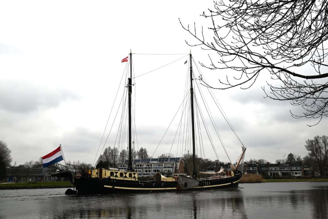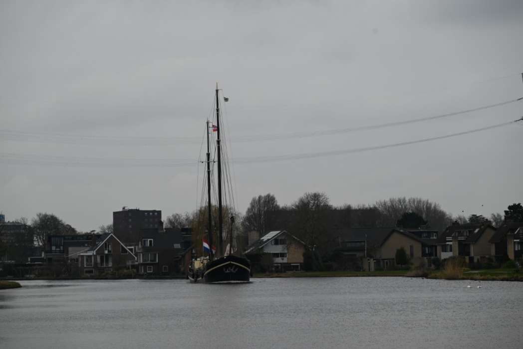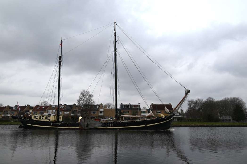 Eigenlijk is De Korevaer maar twee keer per jaar varend te zien in Leiden, als hij aankomt om te overwinteren en in het voorjaar bij het vertrek uit Leiden. Reden genoeg om even de auto neer te zetten en wat foto’s te nemen.