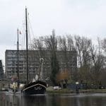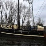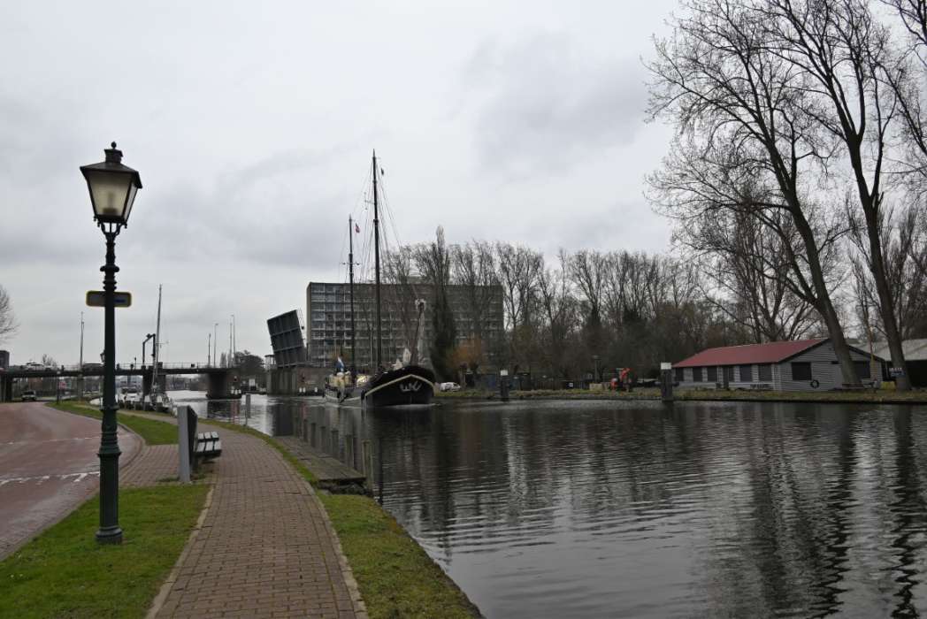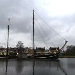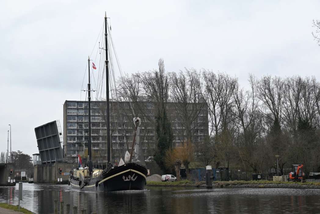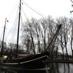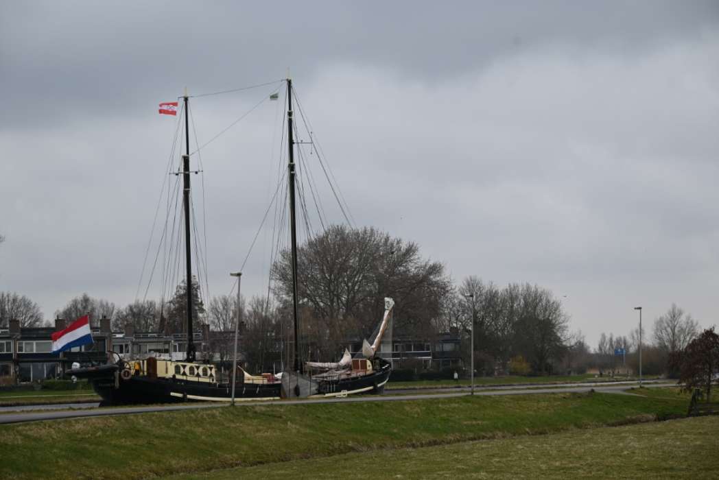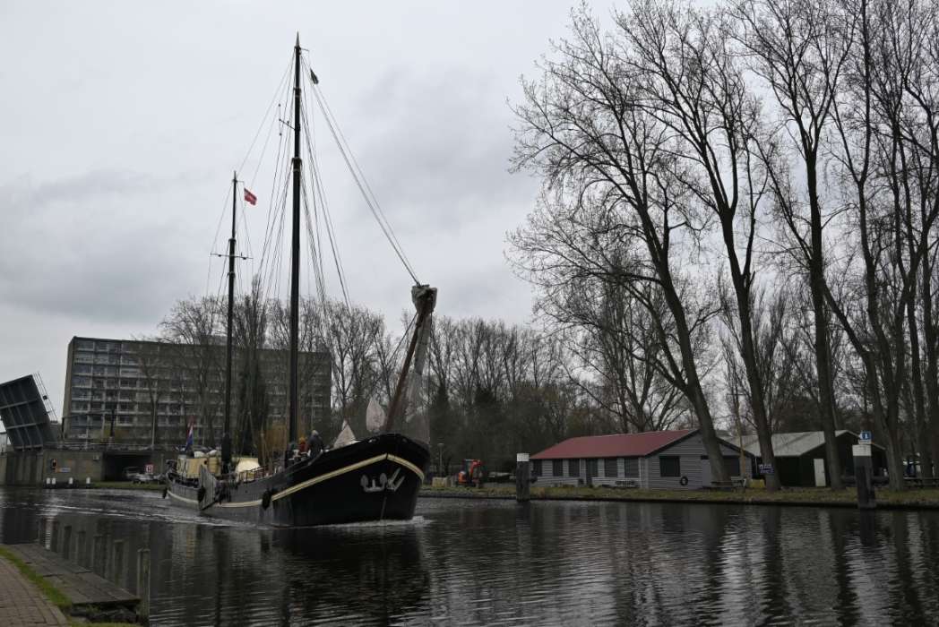Eigenlijk is De Korevaer maar twee keer per jaar varend te zien in Leiden, als hij aankomt om te overwinteren en in het voorjaar bij het vertrek uit Leiden. Reden genoeg om even de auto neer te zetten en wat foto’s te nemen.