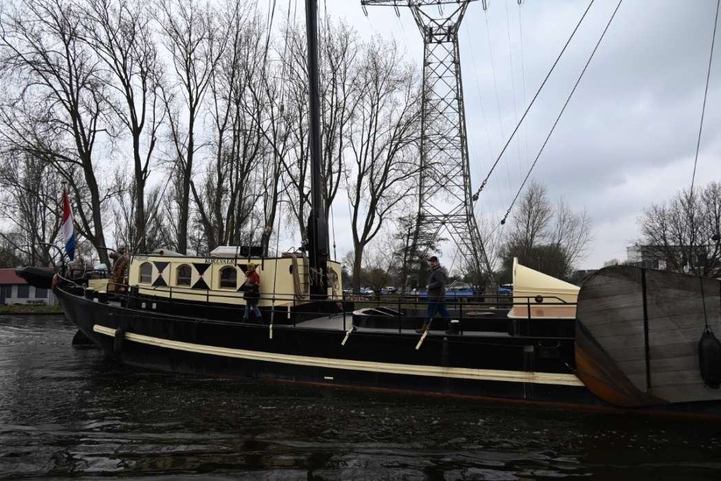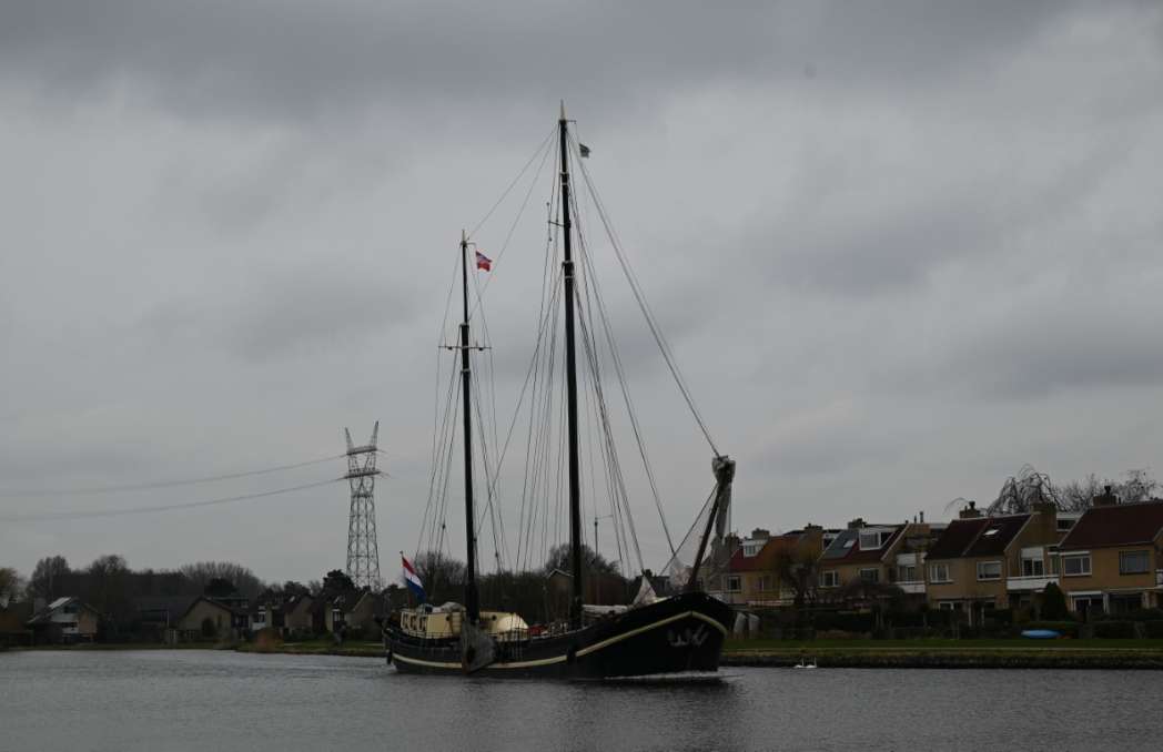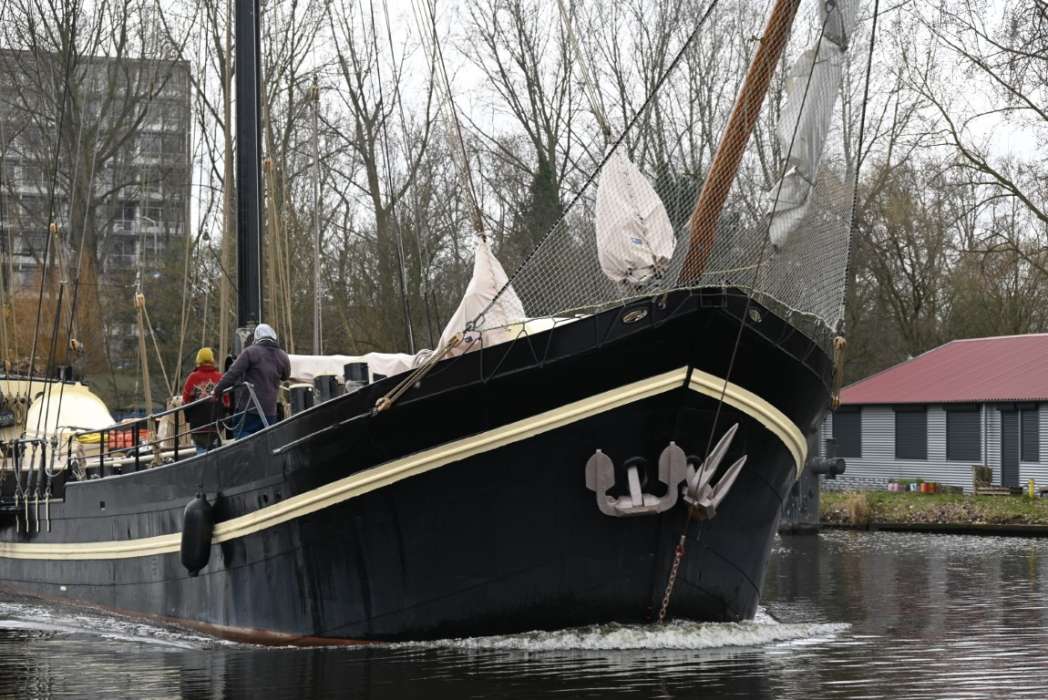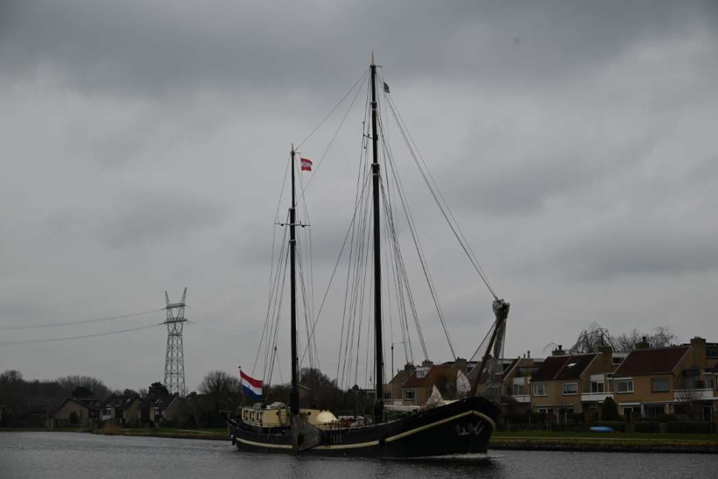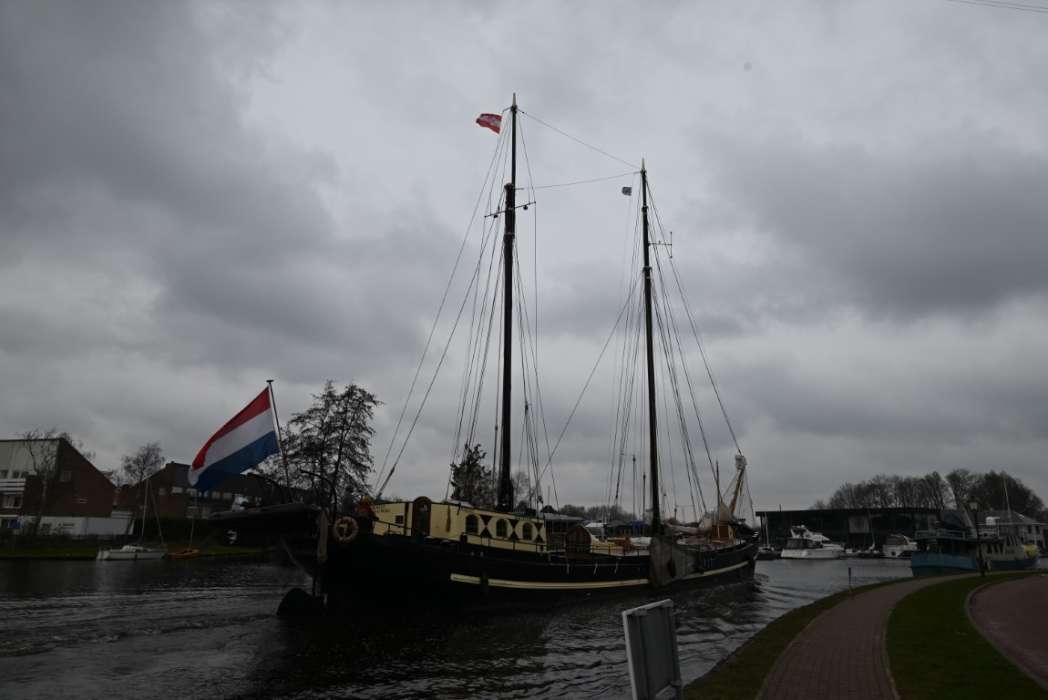 De bemanning was duidelijk ook blij dat ze eerdaags weer lekker kunnen gaan zeilen en zwaaiden vrolijk naar de kou kleumende fotograaf op de winderige Zijldijk 🙂