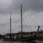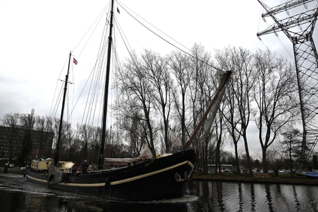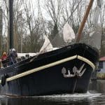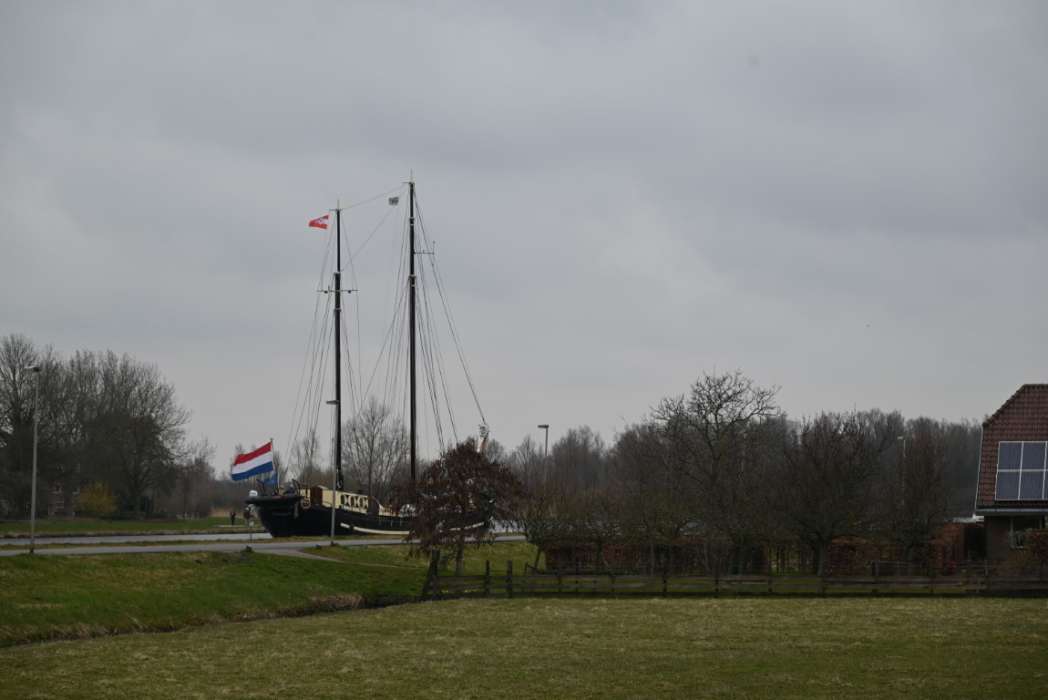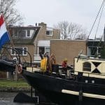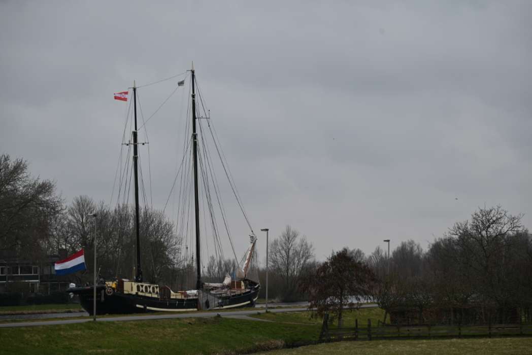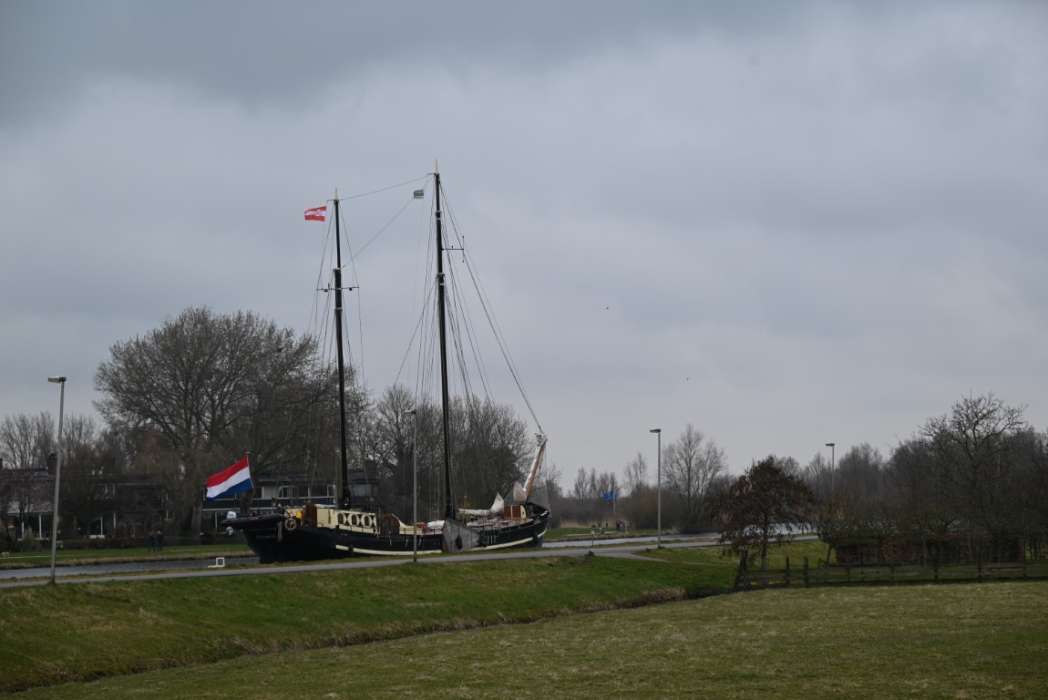 De bemanning was duidelijk ook blij dat ze eerdaags weer lekker kunnen gaan zeilen en zwaaiden vrolijk naar de kou kleumende fotograaf op de winderige Zijldijk 🙂