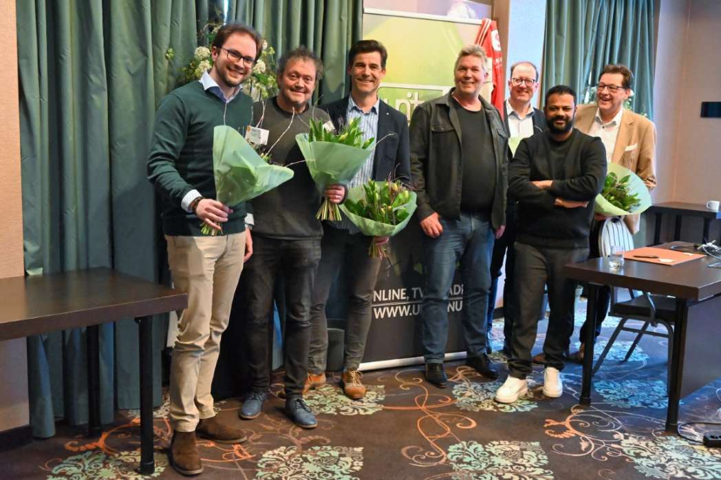 De komende week worden de besturen samengevoegd en gaan gezamenlijk aan de slag om de nieuwe licentie in juni aan te kunnen vragen. Op de foto bestuursleden Luuk van der Krogt, Jaap van Sandijk en Didos van Dam,  omroepdirecteuren Chris de Waard, Rudo Slappendel en bestuursleden Alfred Beekhuizen en Carlo Borsboom.