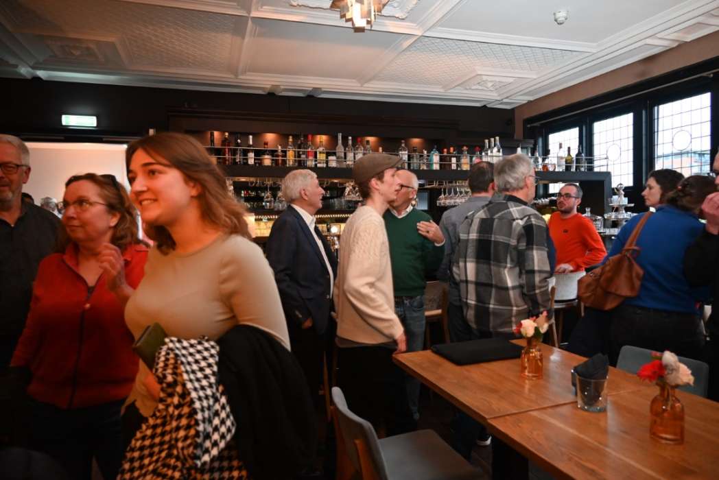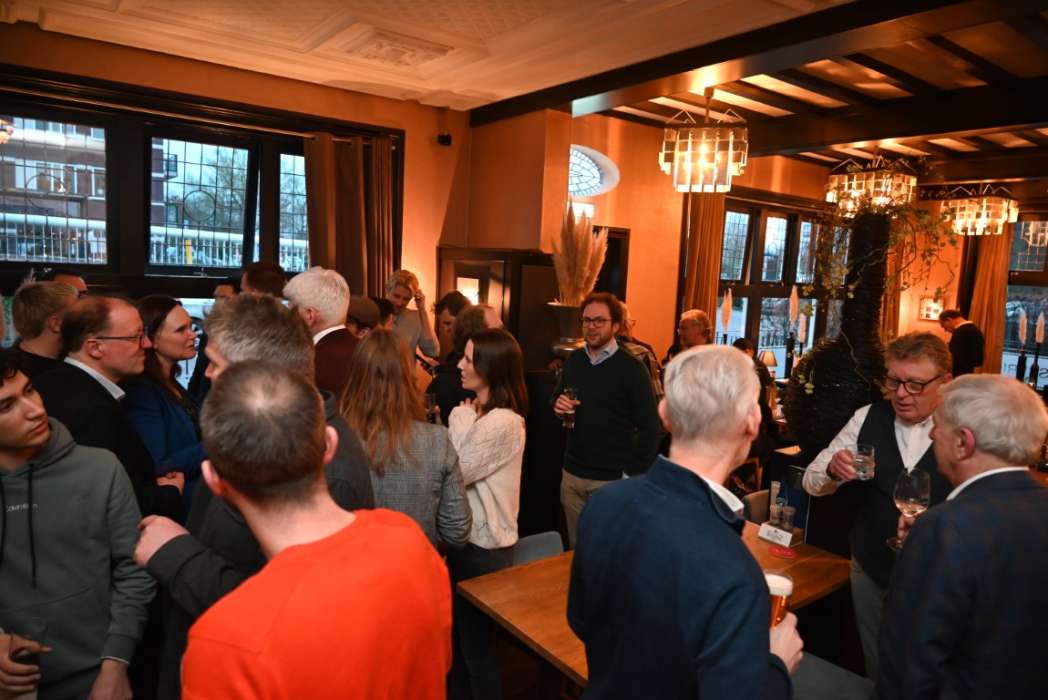 Na het officiële gedeelte was er beneden in de bar van Hotel Leiden een gezellige borrel om, voor zover men elkaar niet kende, kennis te maken en eerste reacties uit te wisselen.