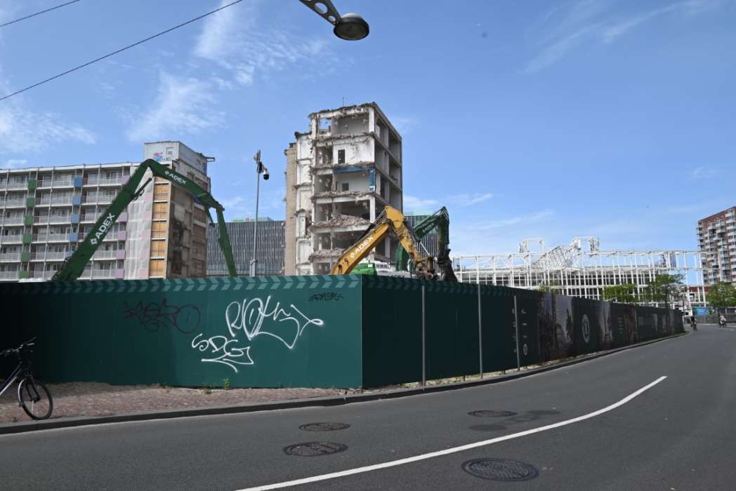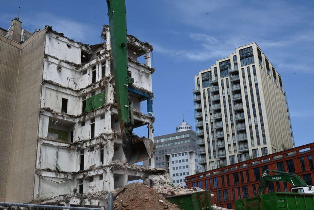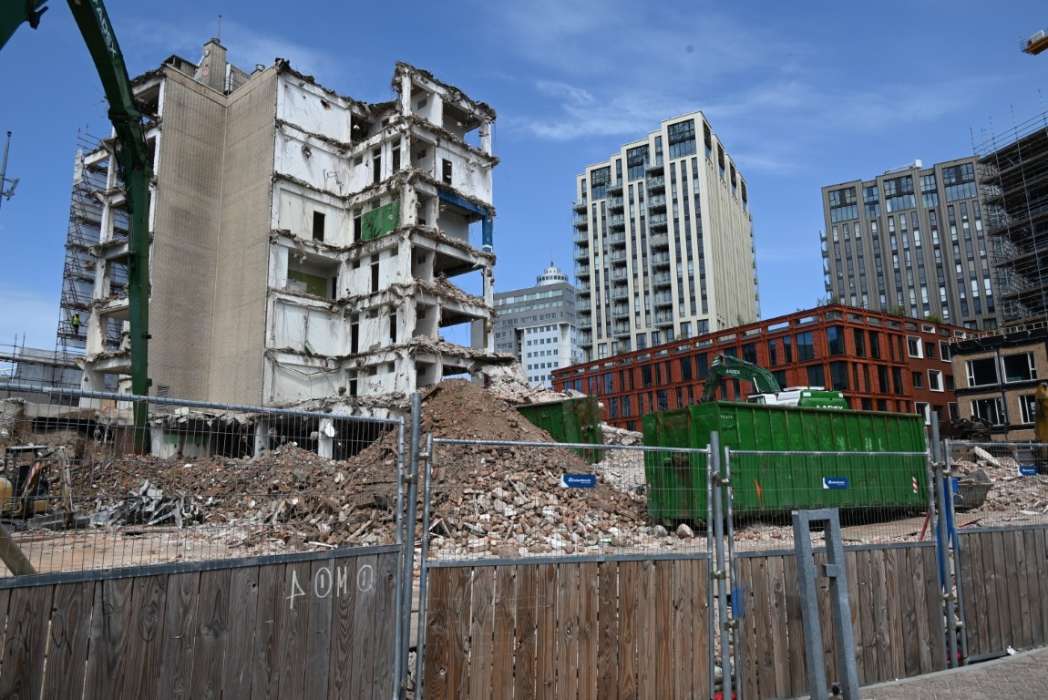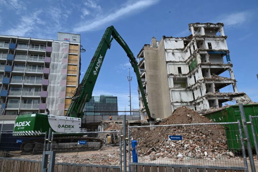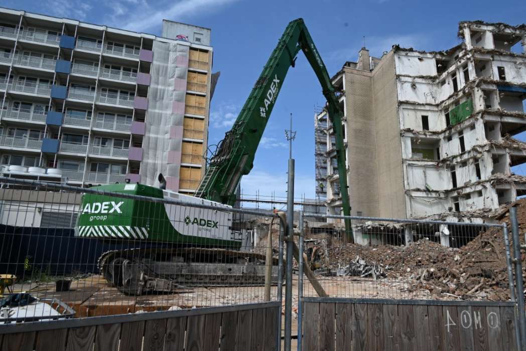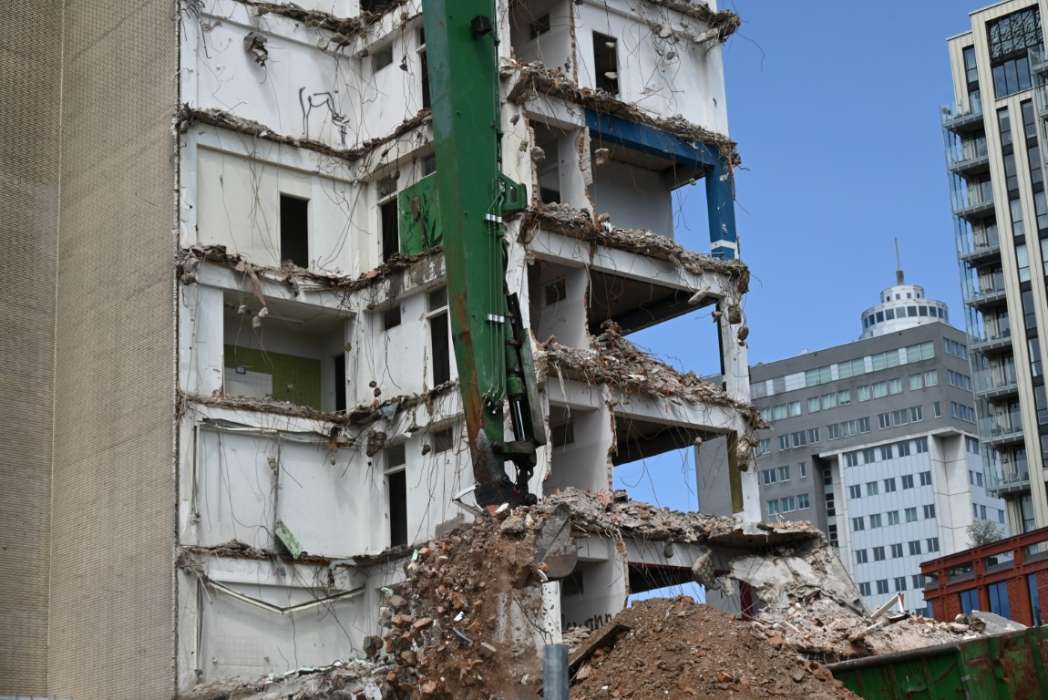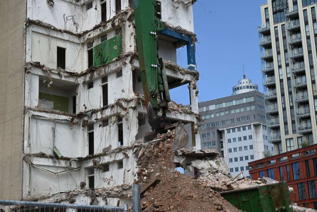 De sloop is in volle gang en de flat is bijna verdwenen.