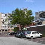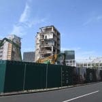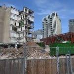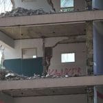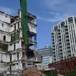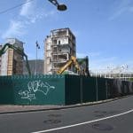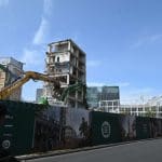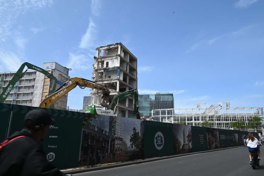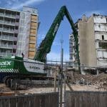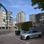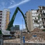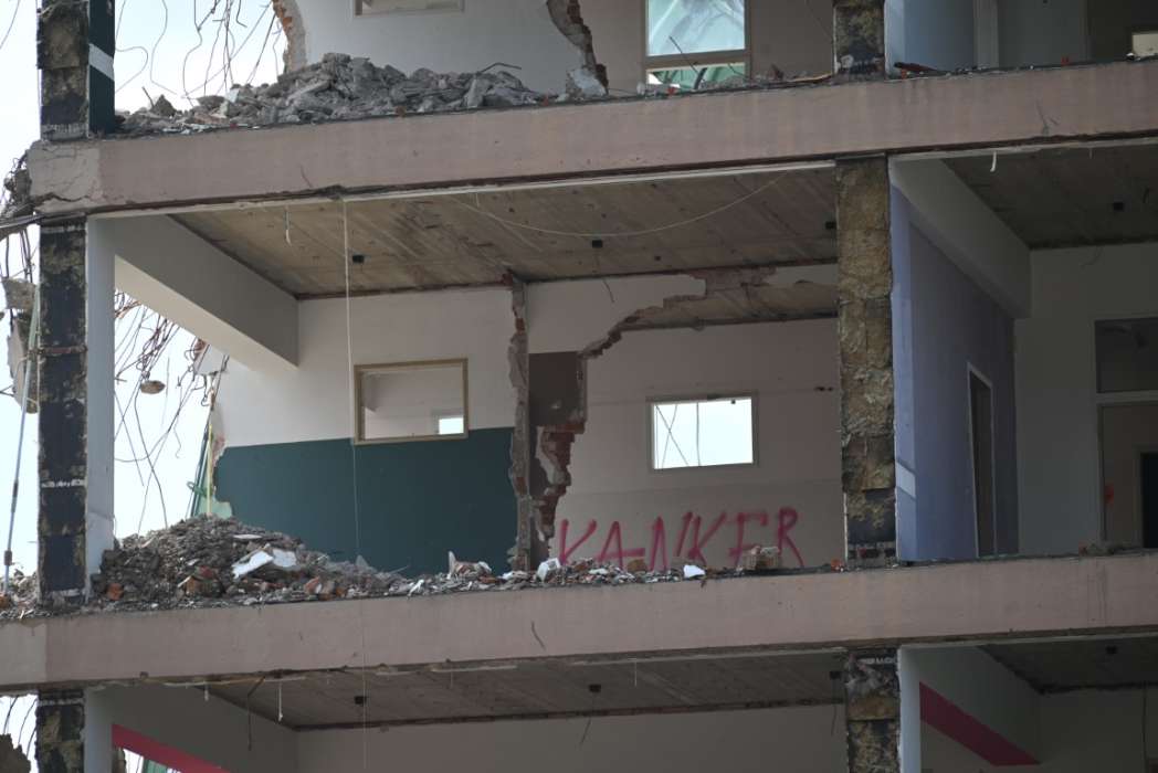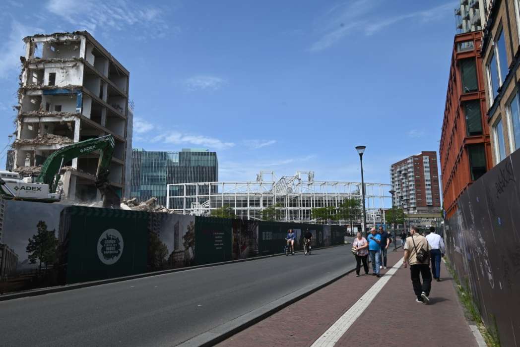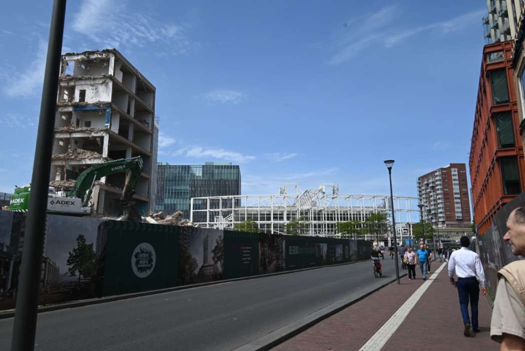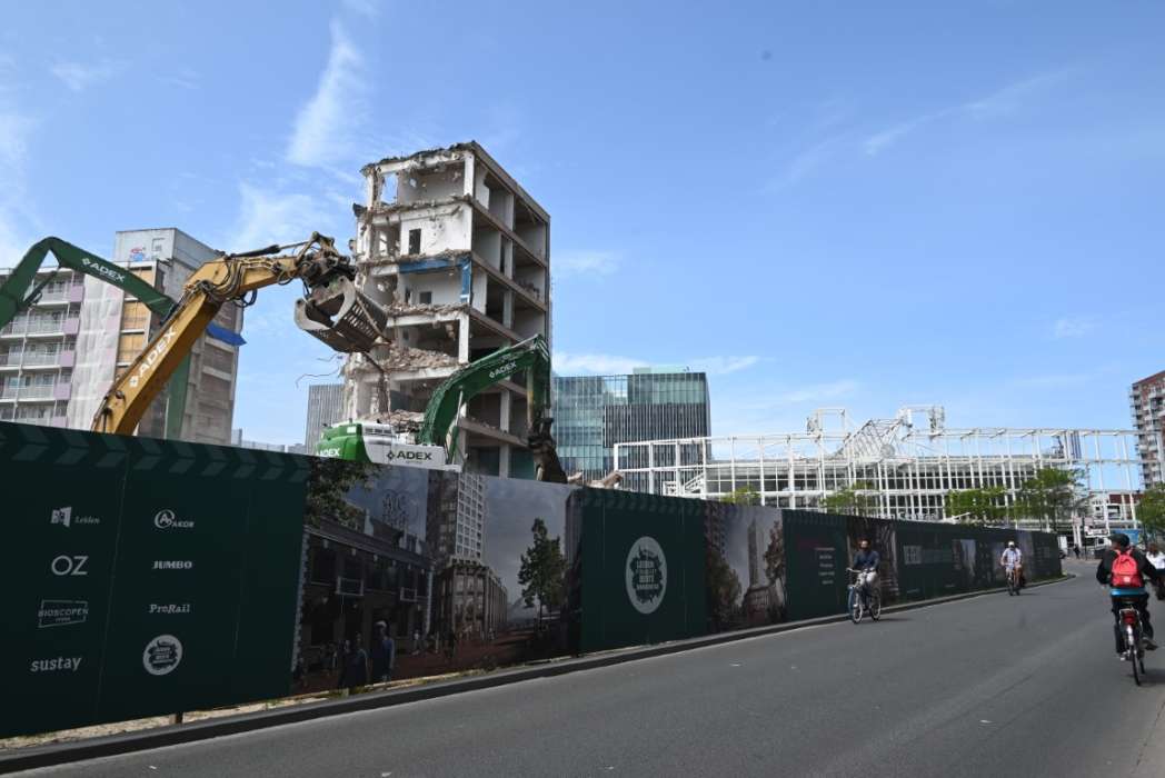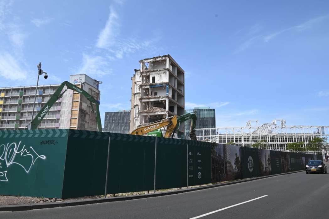 De sloop is in volle gang en de flat is bijna verdwenen.