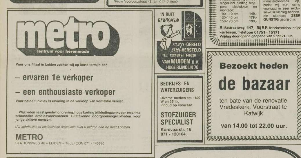 Ik stond voor de etalage en dacht nou nee dat gaat hem niet worden, allemaal ouwe lullenkleding. Ik keerde om en belde thuis naar de winkel om te zeggen dat ik er vanaf zag. De filiaalhouder zei, ik houd van mensen die zo snel kunnen beslissen en handelen, kom toch even langs om te praten. Pfffff met tegenzin, maar wel een baan nodig, ging ik langs. Binnen een half uur was ik aangenomen en kon de volgende dag beginnen. Ik wist niets van kleding, sterker ik wist niet eens mijn eigen maat. Ik zou een boek kunnen schrijven over alles wat ik bij Metro Centrum meegemaakt heb. Een ongeregelder zooitje met intriges en stiekeme verhoudingen heb ik nooit meer meegemaakt, maar leuk was het wel 🙂 Op het moment dat je dan het pand afgebroken ziet worden flitst het allemaal weer door je heen.