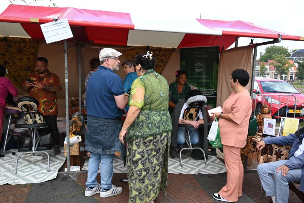 De tweede Pasar Leiden was een groot succes. Op een regenbui na bleef het de hele middag en avond droog, waardoor het gezellig druk was.