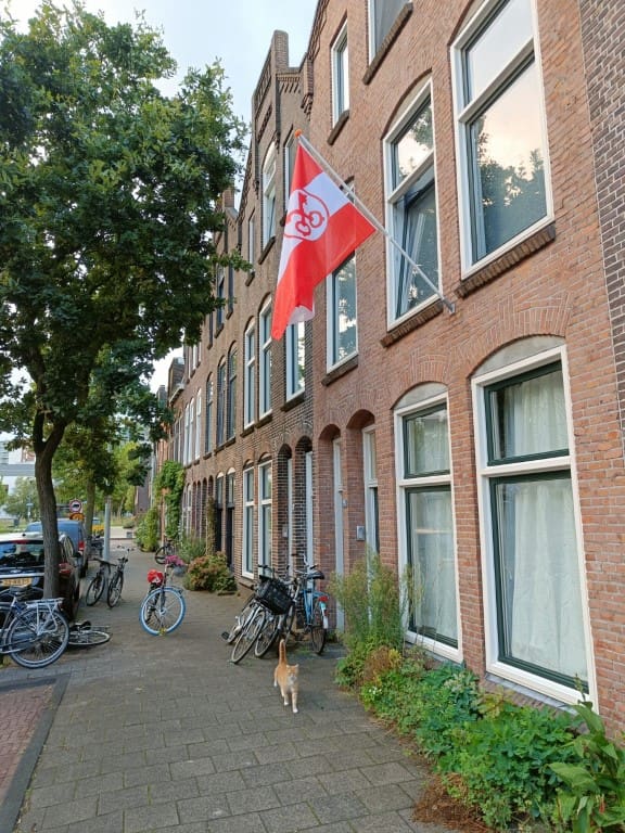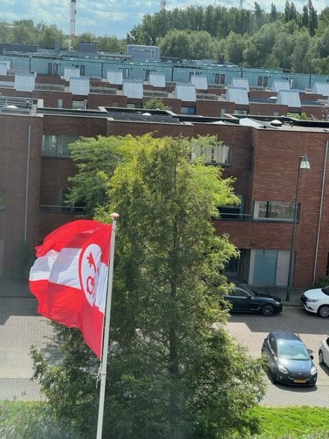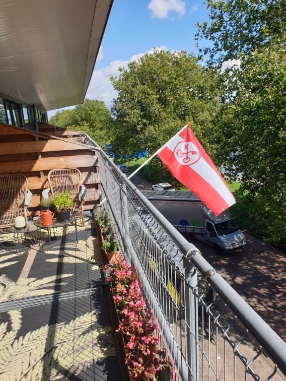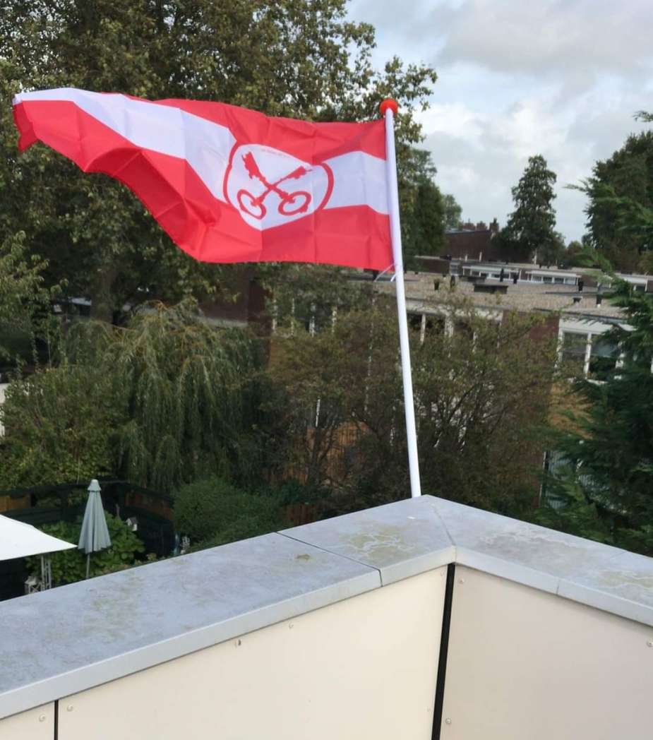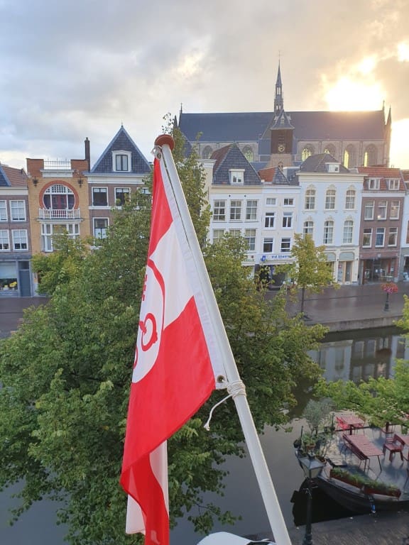 De Leidse vlag uit, geeft verbondenheid en eerbetoon. Hans