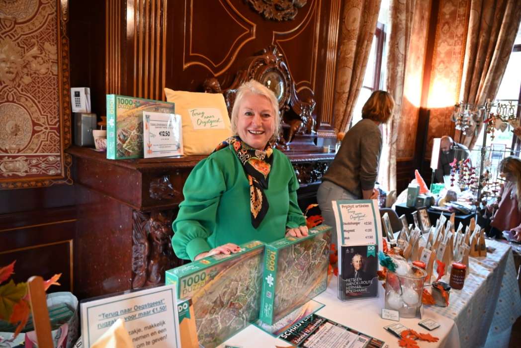 Uiteraard was ook Marjolijn van der Jagt met een stand van Dorpsmarketing Oegstgeest aanwezig. De enkele inwoner van Oegstgeest die de puzzel nog niet heeft kon hem hier nog op de kop te ikken tegen en spotprijsje. Leuk cadeau voor de feestdagen.