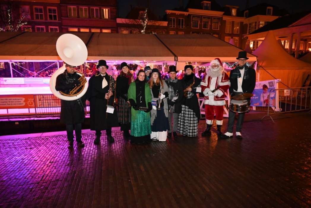 Vrijdagavond werd de Drijvende IJsbaan op de Nieuwe Rijn geopend, vanaf zaterdagmorgen kan er weer een maand lang geschaatst worden in hartje centrum. Voor de ingang van de ijsbaan stond het Dickens orkest van Show en Marchingband Tamarco te spelen om de genodigden in wintersferen te brengen.
