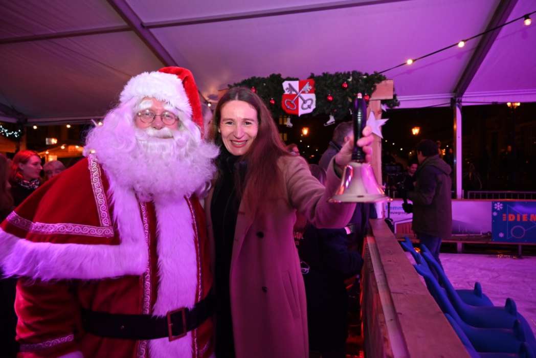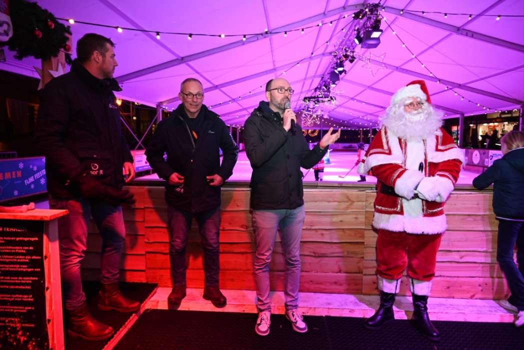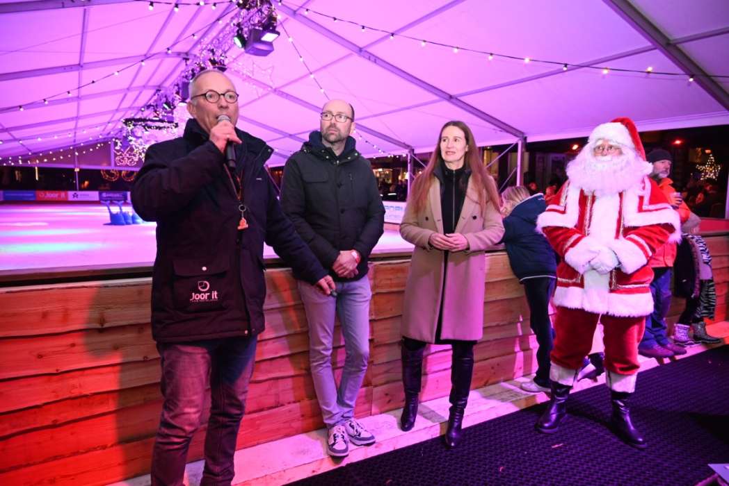De belangrijkste taak was voor wethouder Fleur Spijker. Ze mocht de bel van de Kerstman lenen en gebruikte die om de ijsbaan luid bellend te openen.