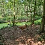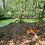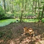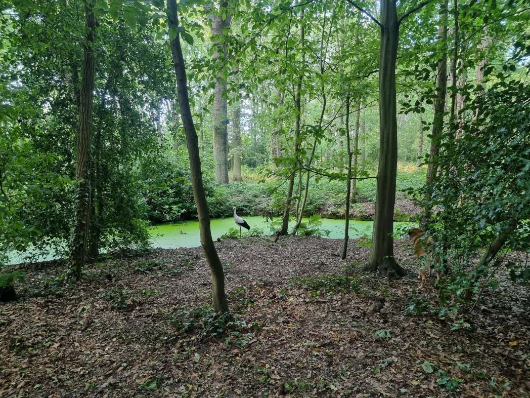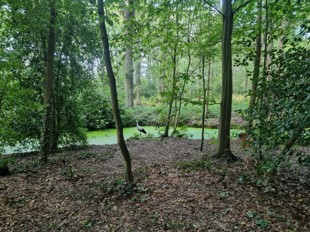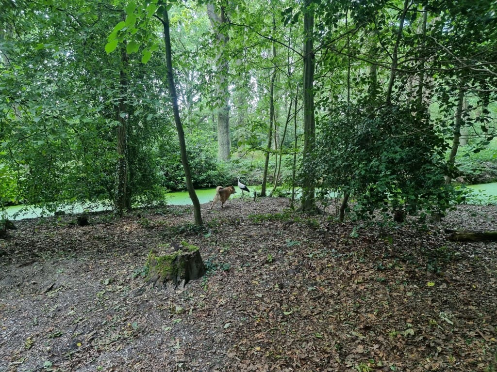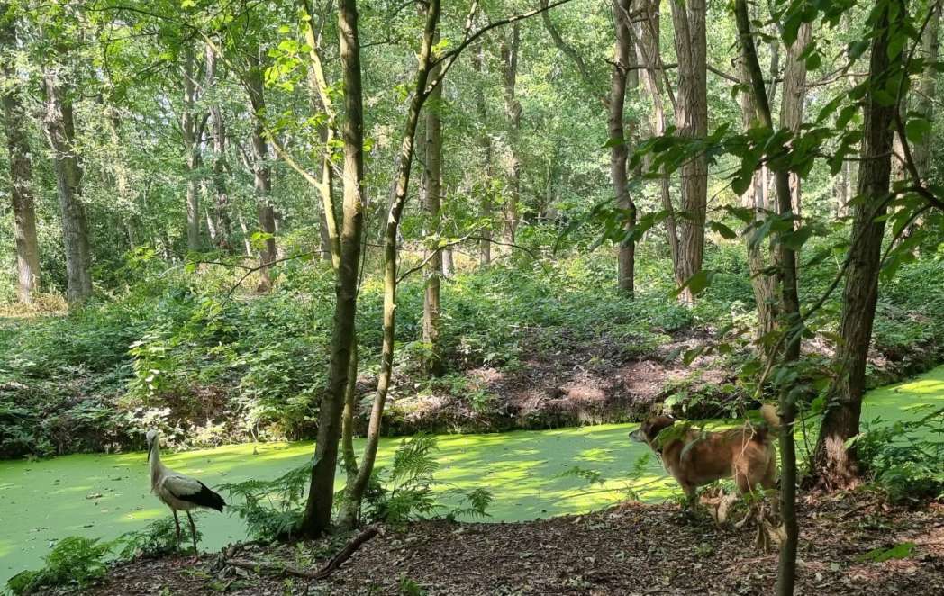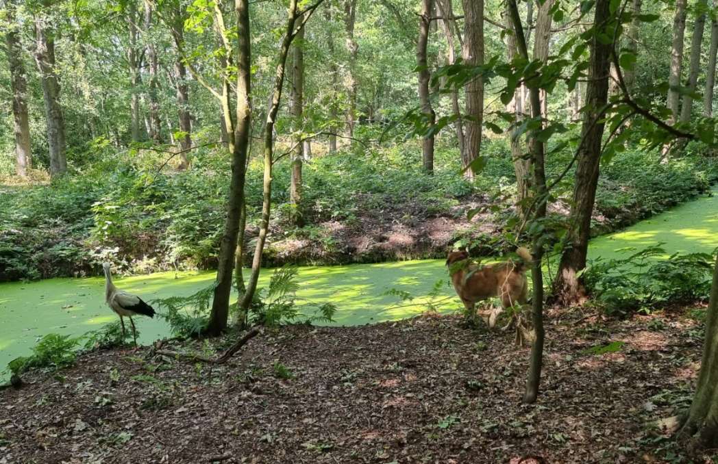De ooievaar dacht: effe lekker mijn poten strekken, en toen kwam Happy eraan. Zelfs van het geblaf was het vliegbeest niet bang. Goed dat je de foto’s (en het filmpje) hebt bewaard.