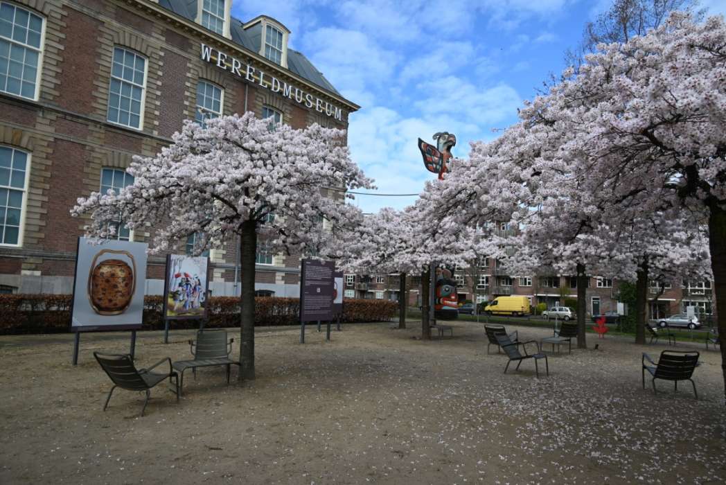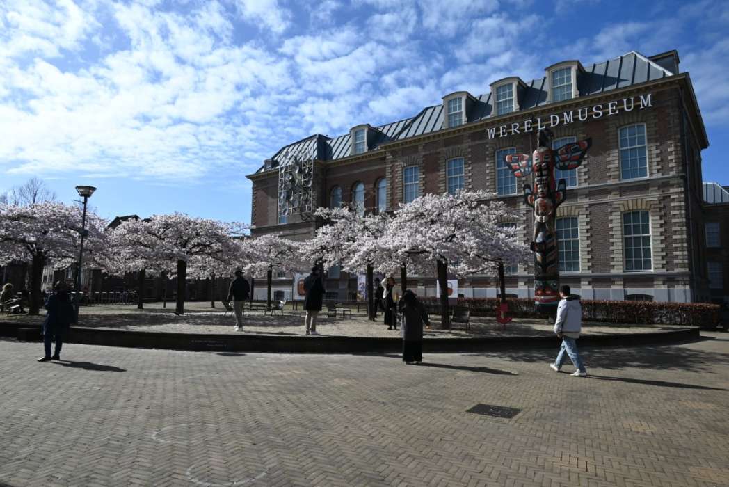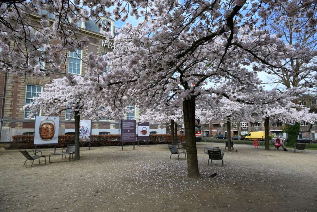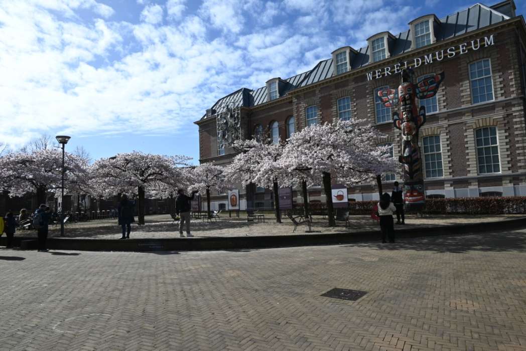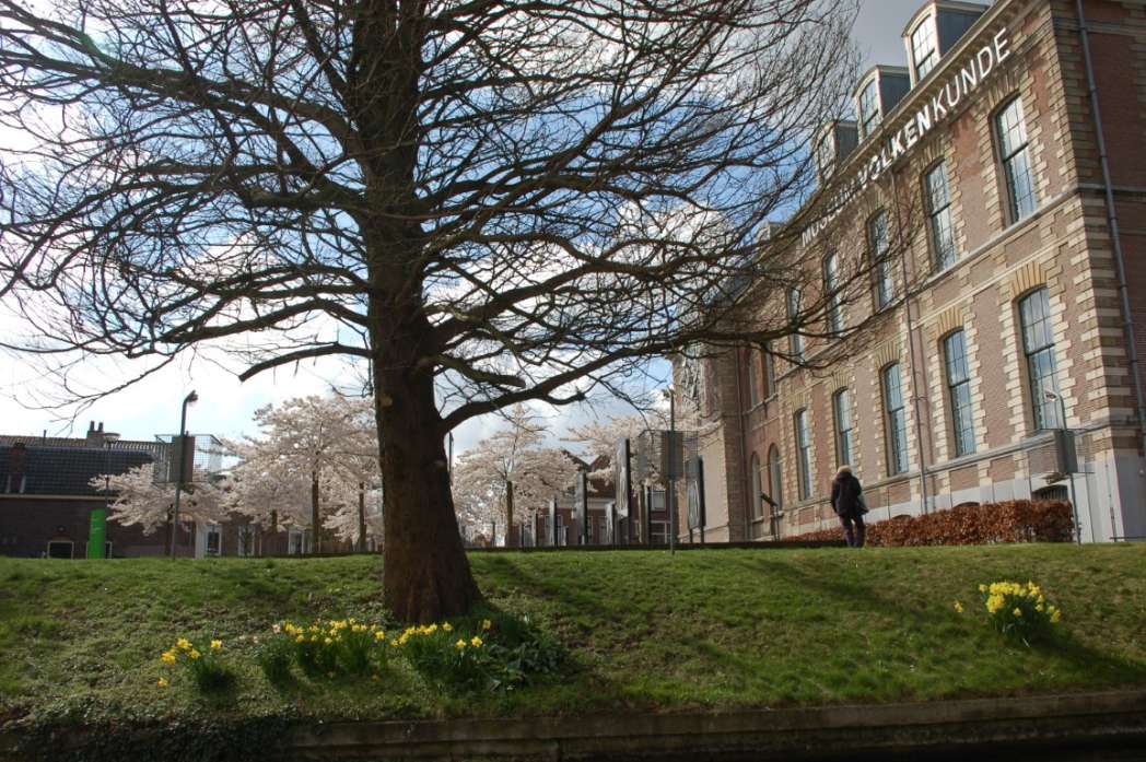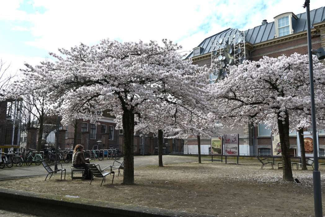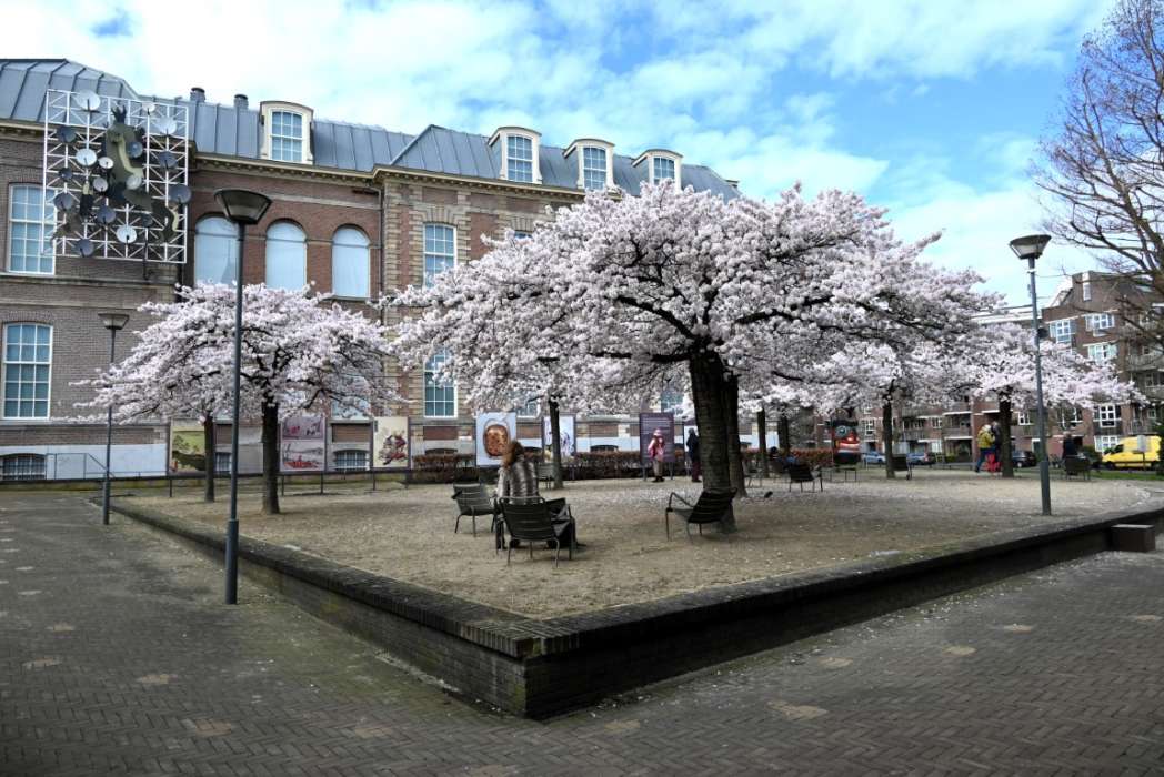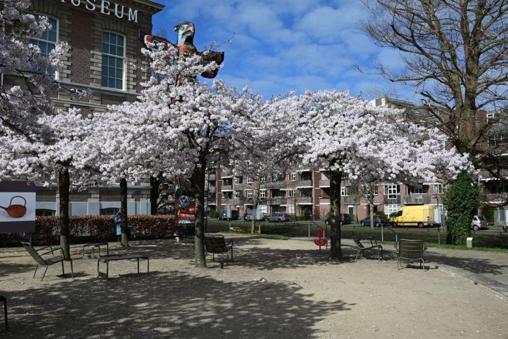 Het is elk jaar weer een prachtig gezicht de kersenbloesem van de Sakura die in bloei staat in de tuin van het Wereldmuseum aan de Steenstraat.